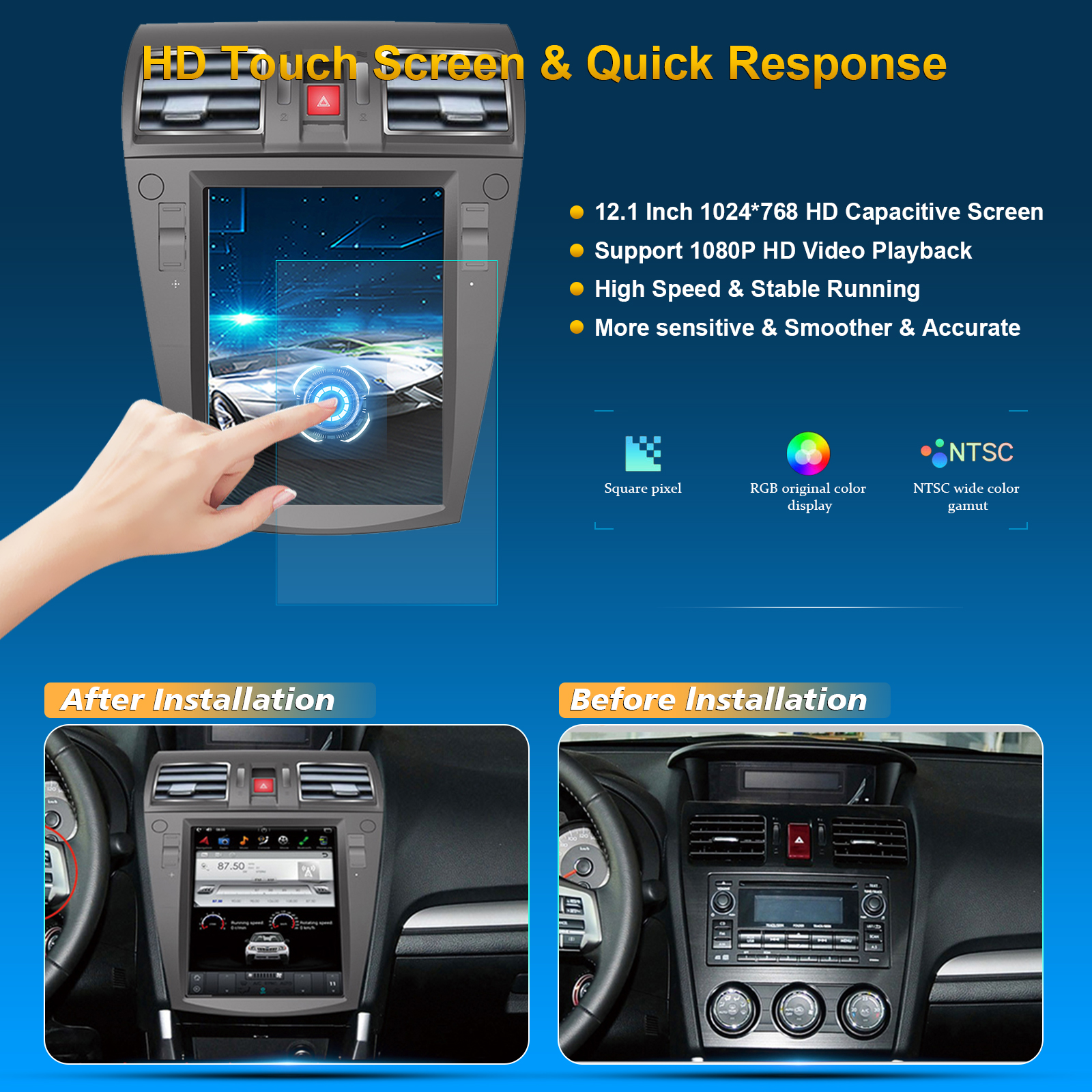 Subaru Forester /XV 2012- 10.4 Inch HD IPS Screen Android Car Stereo Radio GPS Navigation Multimedia Player Tesla Style Vertical Screen with Car Play and Android Auto, Bluetooth,FM,AM, RDS, GPS, WIFI, DSP, Audio, Video,Google, Youtube, Play Store, Netflix, Support Rear Camera,in Dash Kit