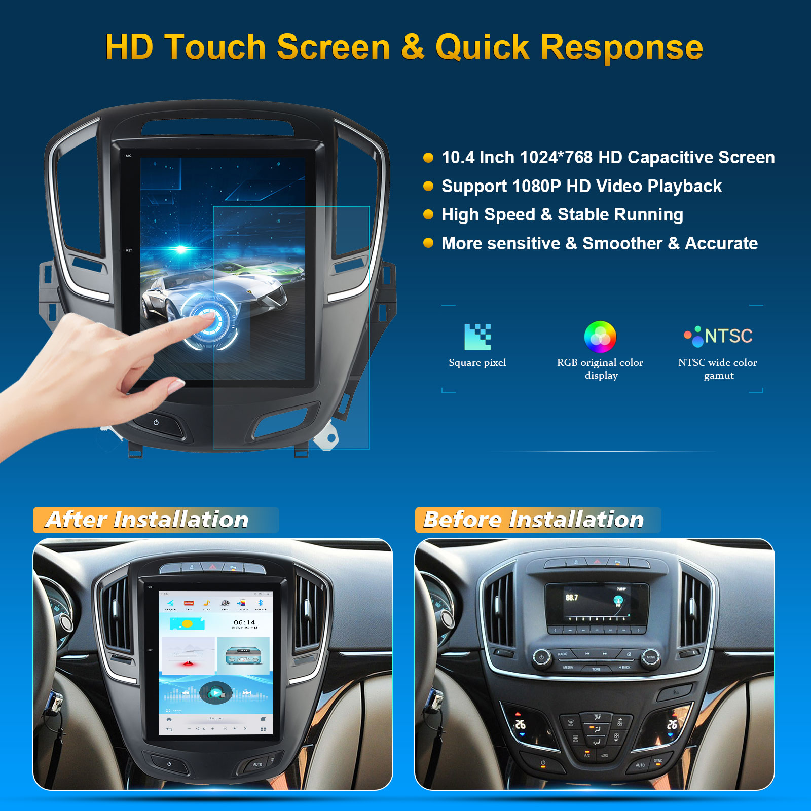 Buick Regal 2014- /Opel Insignia 2014- 10.4 Inch HD IPS Screen Android Car Stereo Radio GPS Navigation Multimedia Player Tesla Style Vertical Screen with Car Play and Android Auto, Bluetooth,FM,AM, RDS, GPS, WIFI, DSP, Audio, Video,Google, Youtube, Play Store, Netflix, Support Rear Camera,in Dash Kit