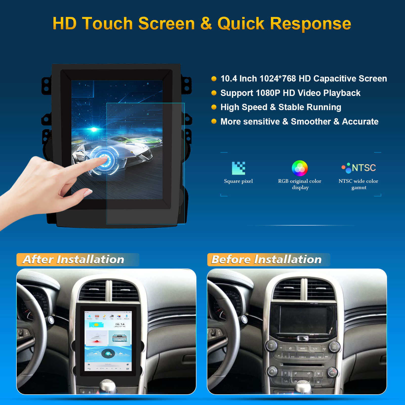 CUSP CHEVROLET MALIBU 2013-2015(Eighth generation)10.4 Inch HD IPS Screen Android Car Stereo Radio GPS Navigation Multimedia Player Tablet Tesla Style Vertical Screen with Car Play and Android Auto, Bluetooth,FM,AM, RDS, GPS, WIFI, DSP, Audio, Video,Google, Youtube, Play Store, Netflix, Support Rear Camera,in Dash Kit