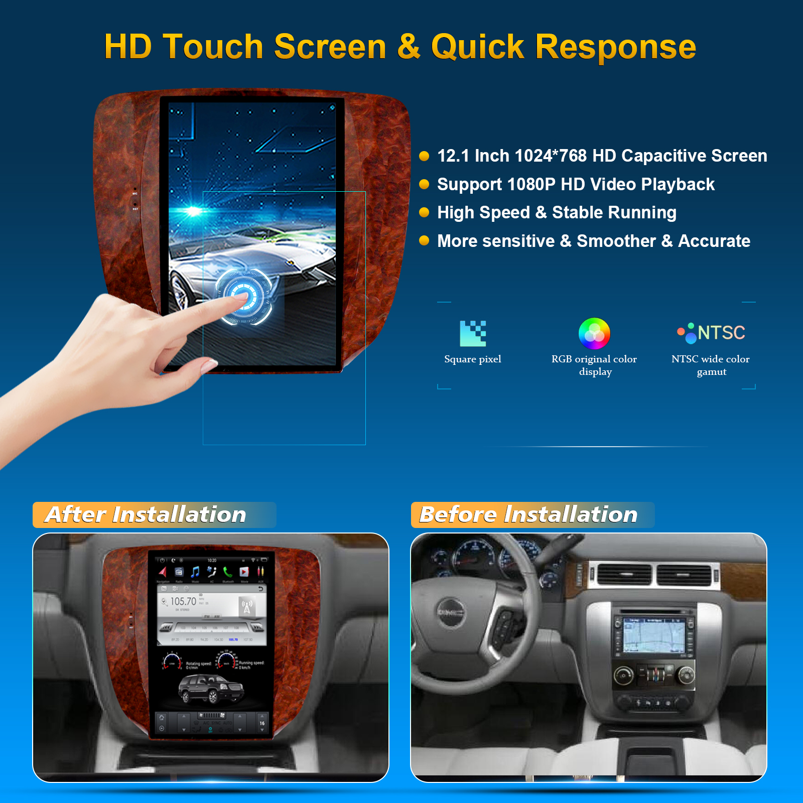 GMC Yukon 2007-2012 /Chevrolet Tahoe 2007--2012/Chevrolet silverado/Shavrola Manual A/C 12.1 Inch HD IPS Screen Android Car Stereo Radio GPS Navigation Multimedia Player Tesla Style Vertical Screen with Car Play and Android Auto, Bluetooth,FM,AM, RDS, GPS, WIFI, DSP, Audio, Video,Google, Youtube, Play Store, Netflix, Support Rear Camera,in Dash Kit
