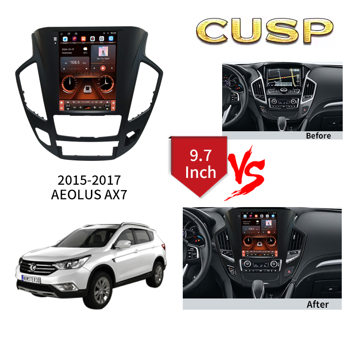 2015-2017 DONGFENG AEOLUS AX7 9.7 Inch HD IPS Screen Android Car Stereo Radio GPS Navigation Multimedia Player Tesla Style Vertical Screen with Car Play and Android Auto, Bluetooth,FM,AM, RDS, GPS, WIFI, DSP, Audio, Video,Google, Youtube, Play Store, Netflix, Support Rear Camera,in Dash Kit