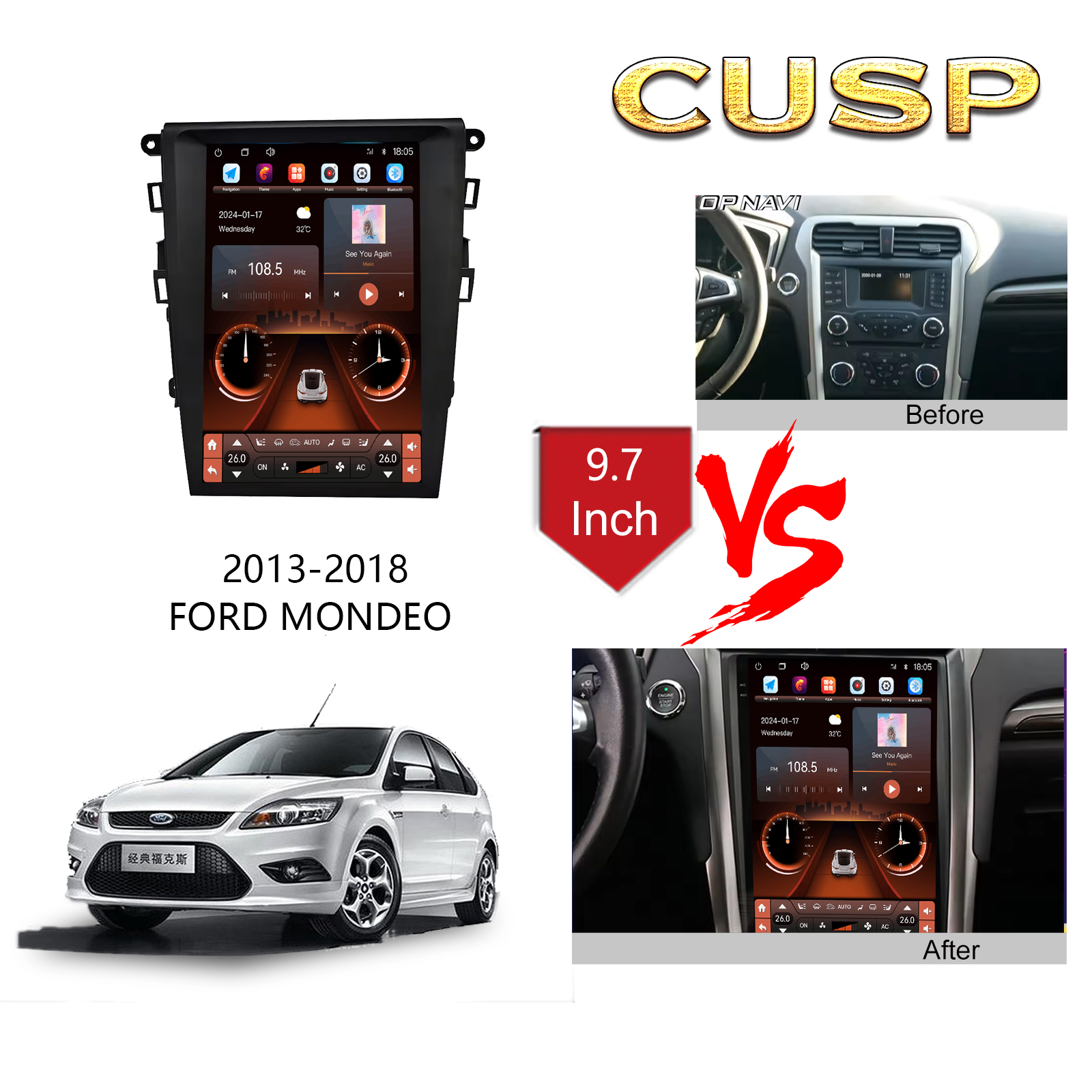 CUSP FORD MONDEO 2013-2018 9.7 Inch HD IPS Screen Android Car Stereo Radio GPS Navigation Multimedia Player Tablet Tesla Style Vertical Screen with Car Play and Android Auto, Bluetooth,FM,AM, RDS, GPS, WIFI, DSP, Audio, Video,Google, Youtube, Play Store, Netflix, Support Rear Camera,in Dash Kit
