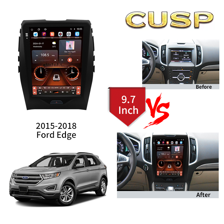 CUSP FORD EDGE 2015-2018 9.7 Inch HD IPS Screen Android Car Stereo Radio GPS Navigation Multimedia Player Tablet Tesla Style Vertical Screen with Car Play and Android Auto, Bluetooth,FM,AM, RDS, GPS, WIFI, DSP, Audio, Video,Google, Youtube, Play Store, Netflix, Support Rear Camera,in Dash Kit