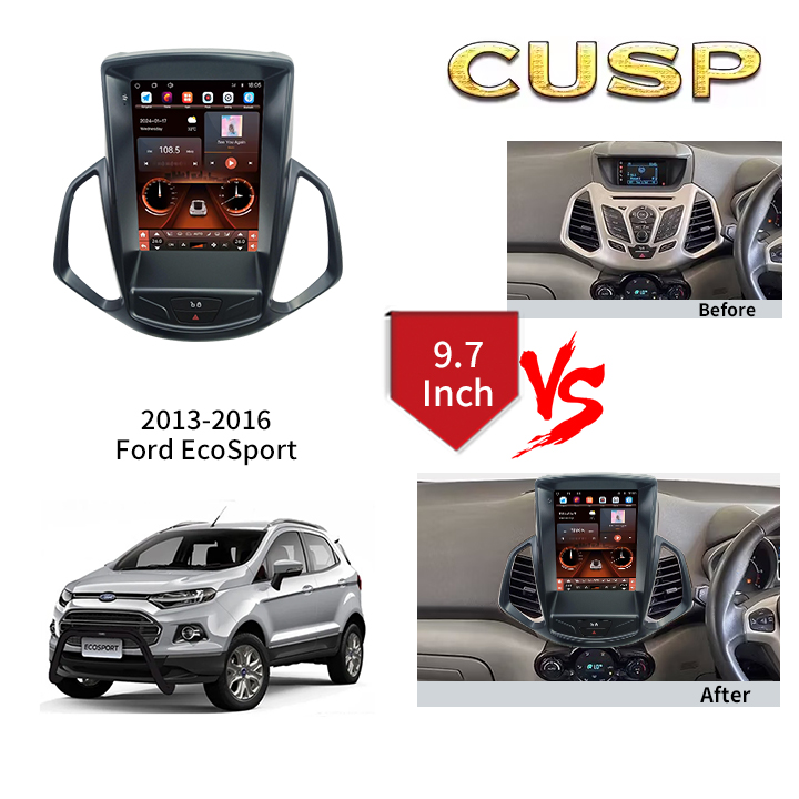 CUSP FORD ECOSPORT 2013-2016 9.7 Inch HD IPS Screen Android Car Stereo Radio GPS Navigation Multimedia Player Tablet Tesla Style Vertical Screen with Car Play Android Auto, Bluetooth, FM, AM, RDS, GPS