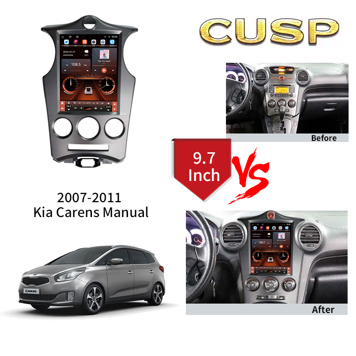 CUSP KIA Carens Manual 2007-2011 9.7 Inch HD IPS Screen Android Car Stereo Radio GPS Navigation Multimedia Player Tablet Tesla Style Vertical Screen with Car Play Android Auto,Bluetooth,FM,AM,RDS,GPS