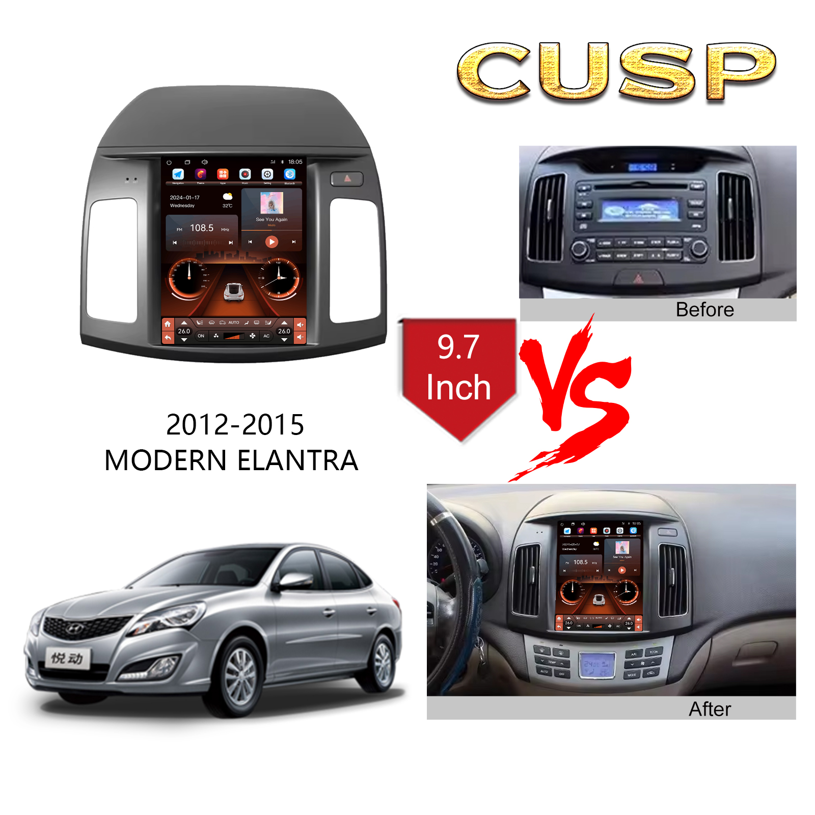 CUSP HYUNDAI ELANTRA 2012-2015 9.7 Inch HD IPS Screen Android Car Stereo Radio GPS Navigation Multimedia Player Tablet Tesla Style Vertical Screen with Car Play and Android Auto, Bluetooth,FM,AM, RDS, GPS, WIFI, DSP, Audio, Video,Google, Youtube, Play Store, Netflix, Support Rear Camera,in Dash Kit
