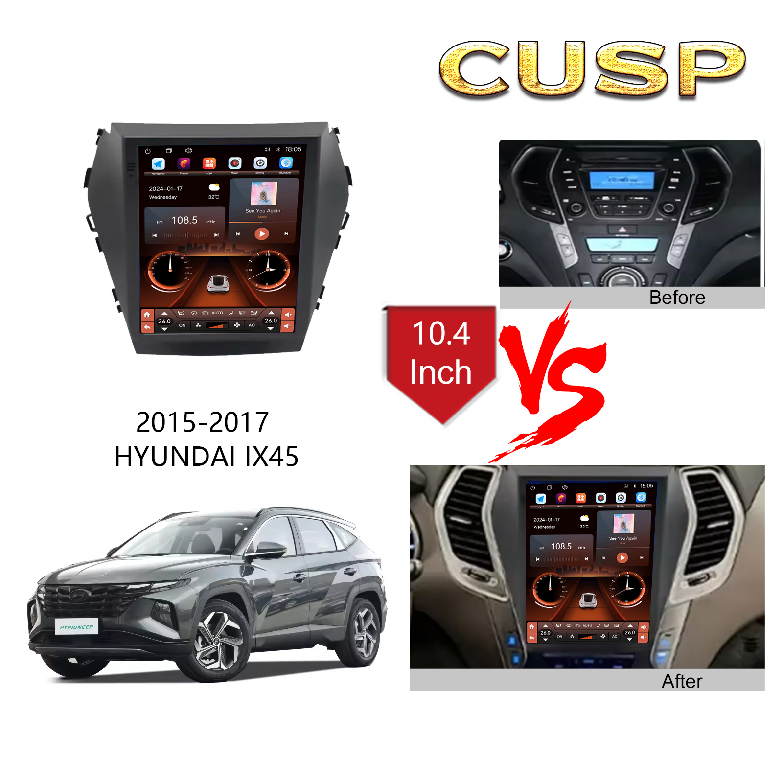 CUSP HYUNDAI IX45 2015-2017 9.7 Inch HD IPS Screen Android Car Stereo Radio GPS Navigation Multimedia Player Tablet Tesla Style Vertical Screen with Car Play and Android Auto, Bluetooth,FM,AM, RDS, GPS, WIFI, DSP, Audio, Video,Google, Youtube, Play Store, Netflix, Support Rear Camera,in Dash Kit