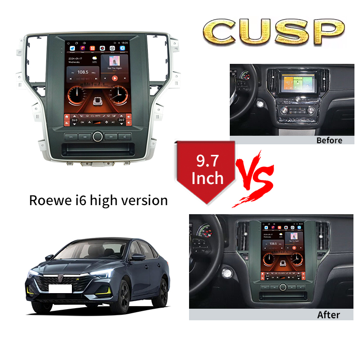ROEWE I6 (HIGH-END) 9.7 Inch HD IPS Screen Android Car Stereo Radio GPS Navigation Multimedia Player Tesla Style Vertical Screen with Car Play and Android Auto, Bluetooth,FM,AM, RDS, GPS, WIFI, DSP, Audio, Video,Google, Youtube, Play Store, Netflix, Support Rear Camera,in Dash Kit