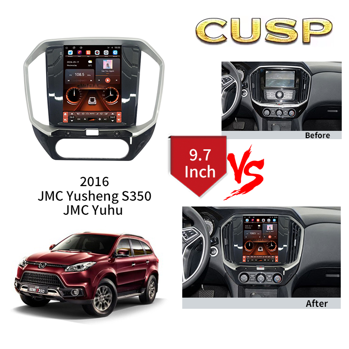 2016 JMC Yusheng S350 JMC Yuhu 9.7 Inch HD IPS Screen Android Car Stereo Radio GPS Navigation Multimedia Player Tesla Style Vertical Screen with Car Play and Android Auto, Bluetooth,FM,AM, RDS, GPS, WIFI, DSP, Audio, Video,Google, Youtube, Play Store, Netflix, Support Rear Camera,in Dash Kit