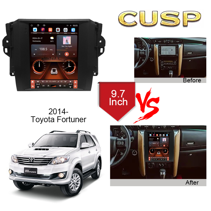 CUSP TOYOTA FORTUNER 2014- 9.7 Inch HD IPS Screen Android Car Stereo Radio GPS Navigation Multimedia Player Tablet Tesla Style Vertical Screen with Car Play and Android Auto, Bluetooth,FM,AM, RDS, GPS, WIFI, DSP, Audio, Video,Google, Youtube, Play Store, Netflix, Support Rear Camera,in Dash Kit