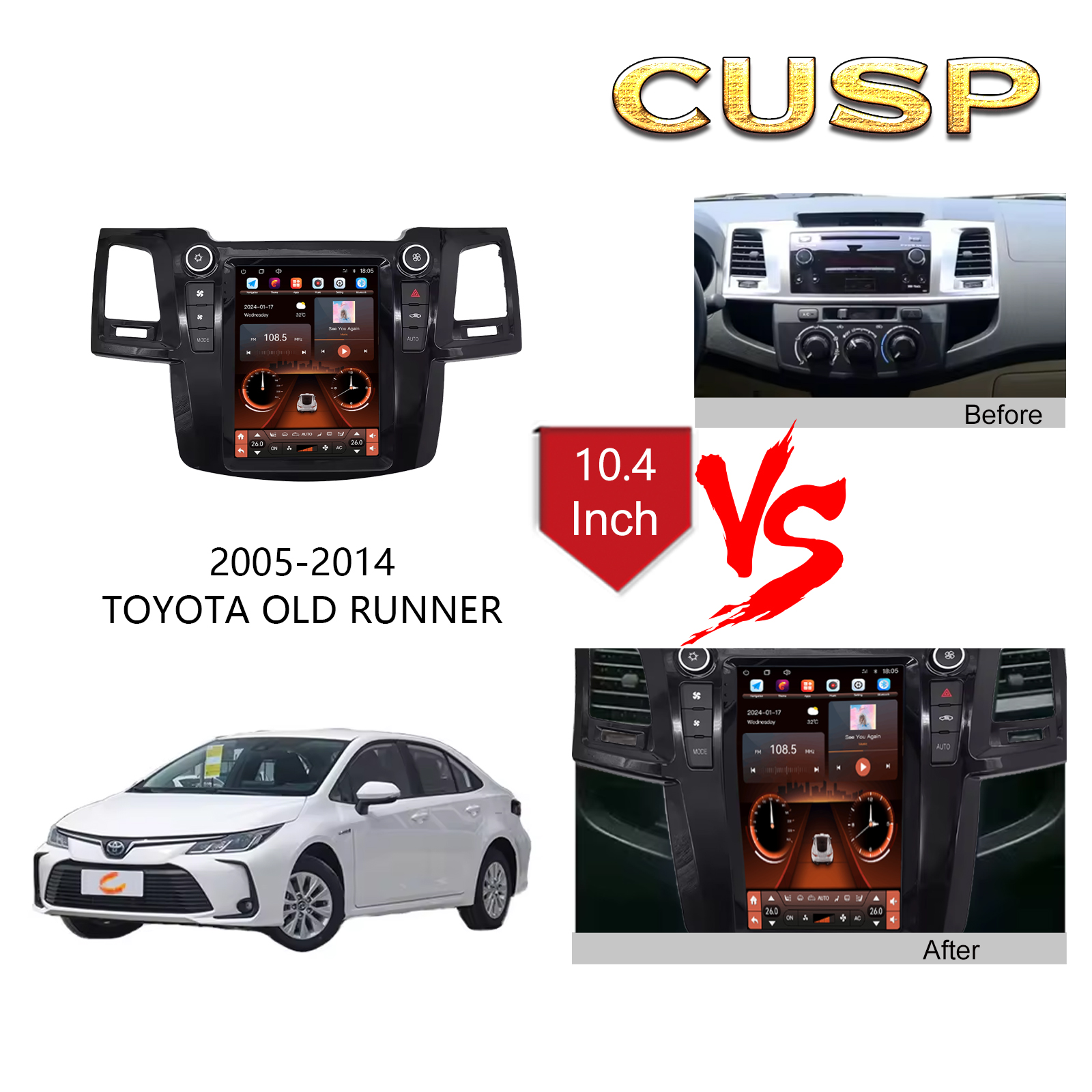CUSP TOYOTA FORTUNER (HILUX) 2005-2014 9.7 Inch HD IPS Screen Android Car Stereo Radio GPS Navigation Multimedia Player Tablet Tesla Style Vertical Screen with Car Play Android Auto, Bluetooth,FM,AM