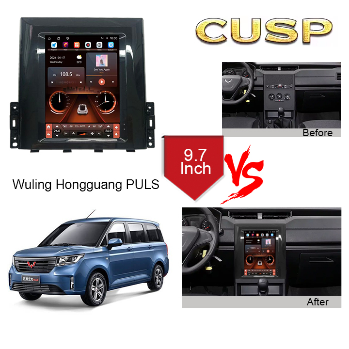 WULING HONGGUANG PULS 9.7 Inch HD IPS Screen Android Car Stereo Radio GPS Navigation Multimedia Player Tesla Style Vertical Screen with Car Play Android Auto, Bluetooth,FM,AM, RDS, GPS, WIFI, DSP