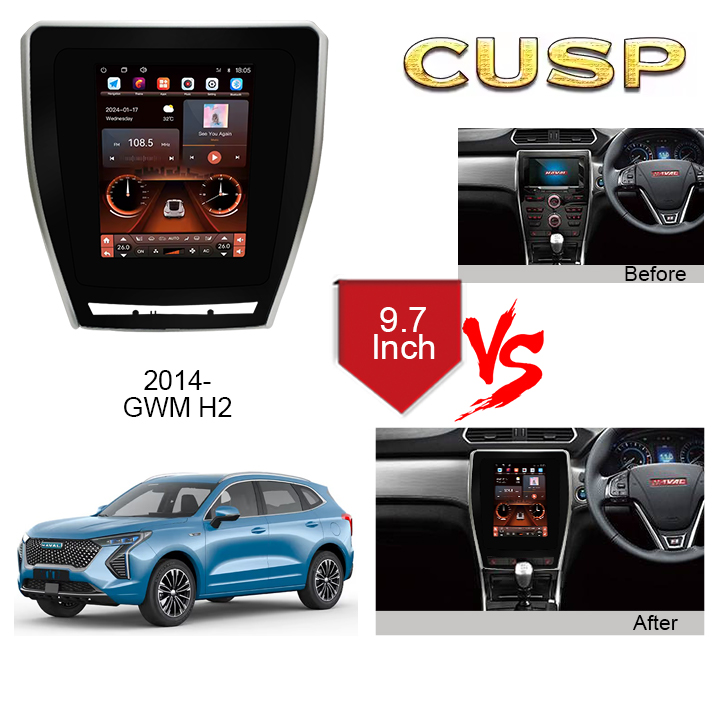GREAT WALL H2 2014- 9.7 Inch HD IPS Screen Android Car Stereo Radio GPS Navigation Multimedia Player Tesla Style Vertical Screen with Car Play Android Auto, Bluetooth,FM,AM, RDS, GPS, WIFI, DSP