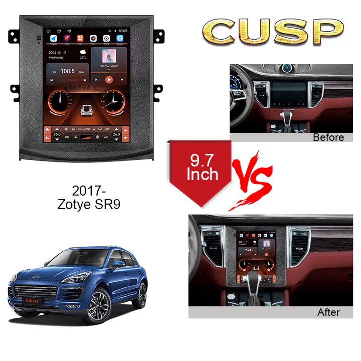 ZOTYE SR9 2017- 9.7 Inch HD IPS Screen Android Car Stereo Radio GPS Navigation Multimedia Player Tesla Style Vertical Screen with Car Play and Android Auto, Bluetooth,FM,AM, RDS, GPS, WIFI, DSP, Audio, Video,Google, Youtube, Play Store, Netflix, Support Rear Camera,in Dash Kit