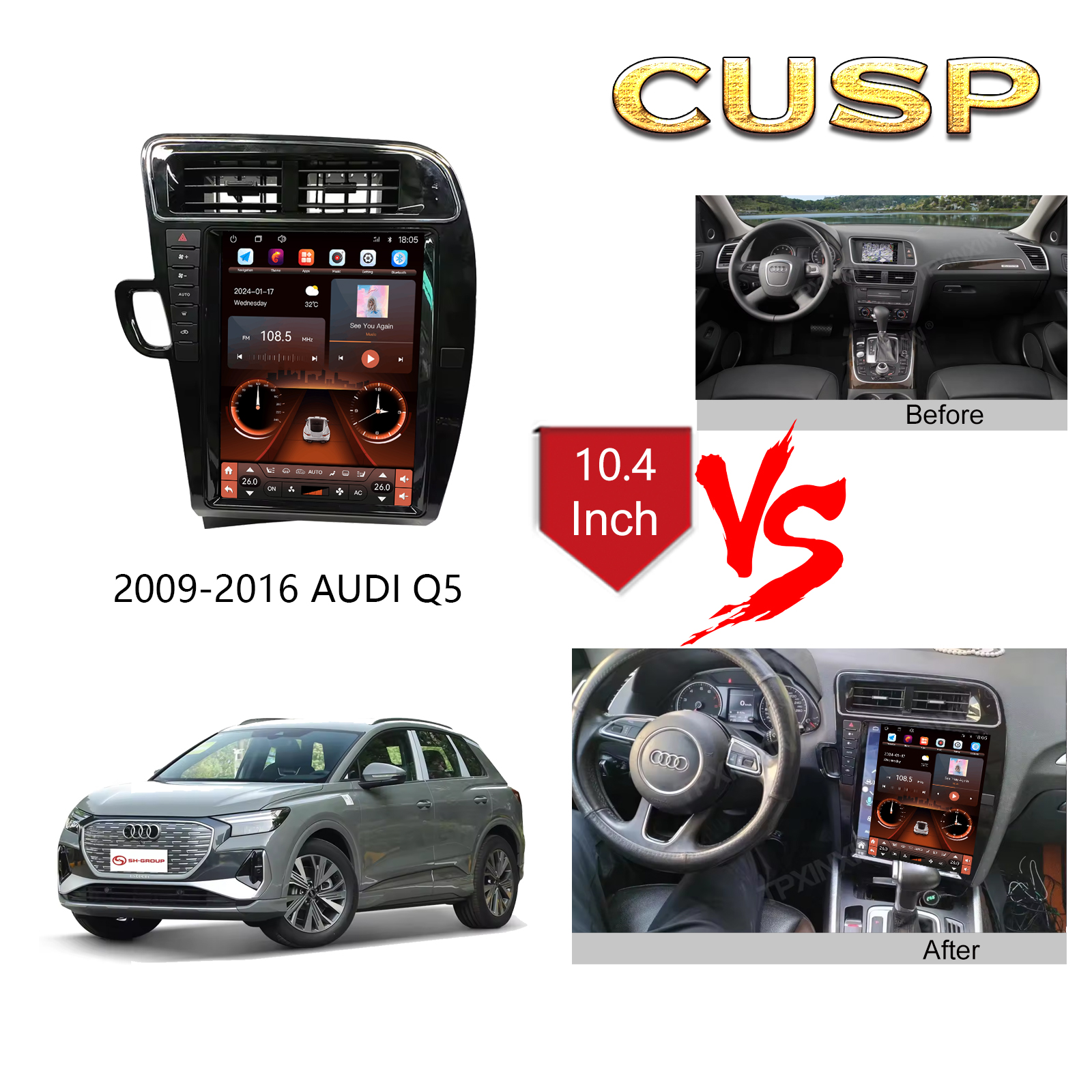 CUSP AUDI Q5 LHD 2009-2016 9.7 Inch HD IPS Screen Android Car Stereo Radio GPS Navigation Multimedia Player Tablet Tesla Style Vertical Screen with Car Play and Android Auto, Bluetooth,FM,AM, RDS, GPS, WIFI, DSP, Audio, Video,Google, Youtube, Play Store, Netflix, Support Rear Camera,in Dash Kit