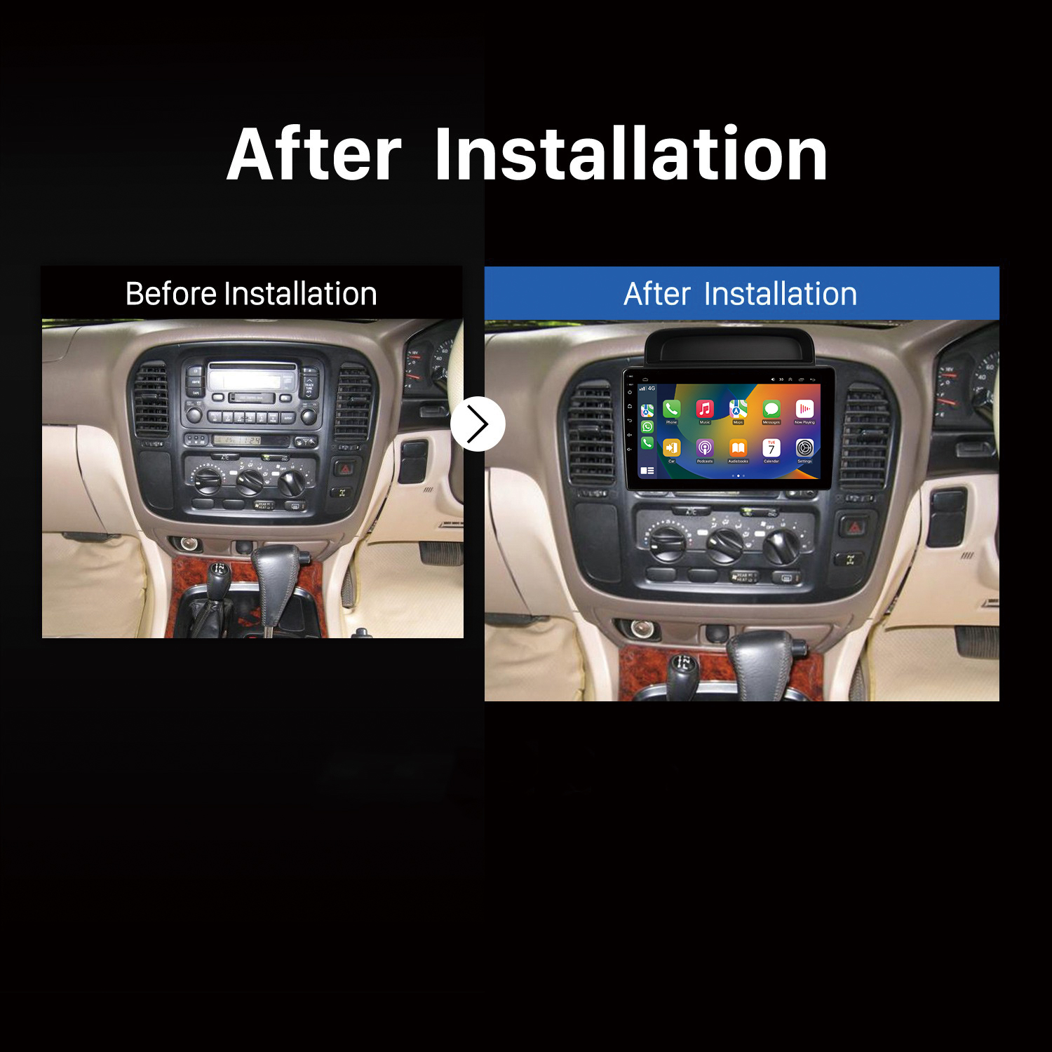 TOYOTA LC100 HIGH-END 1998-2002 10.1 inch HD IPS Screen Android Car Stereo Radio GPS Navigation Multimedia Player Tablet with Car Play and Android Auto, Bluetooth,FM,AM, RDS, GPS, WIFI, DSP, Audio, Video,Google, Youtube, Play Store, Netflix, Support Rear Camera,in Dash Kit