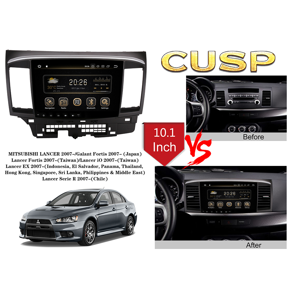 CUSP MITSUBISHI LANCER 2007- / Galant Fortis 2007- (Japan) / Lancer Fortis 2007-(Taiwan) / Lancer iO 2007-(Taiwan) / Lancer EX 2007-(Indonesia, El Salvador, Panama, Thailand, Hong Kong, Singapore, Sri Lanka, Philippines & Middle East) / Lancer Serie R 2007-(Chile) 10.1 Inch HD IPS Screen Android Car Stereo Radio GPS Navigation Multimedia Player Tablet with Car Play and Android Auto, Bluetooth,FM,AM, RDS, GPS, WIFI, DSP, Audio, Video,Google, Youtube, Play Store, Netflix, Support Rear Camera,in Dash Kit