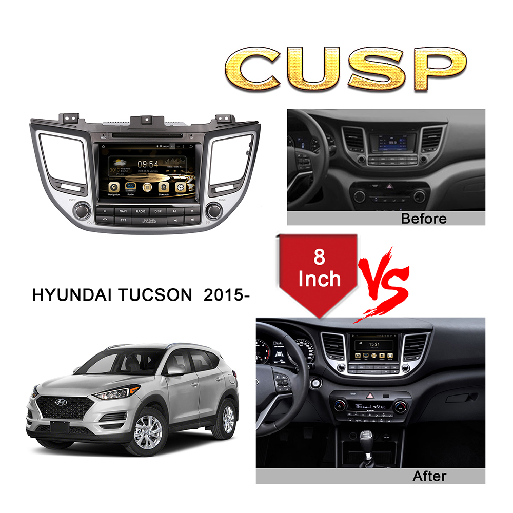CUSP HYUNDAI TUCSON IX35 2015- 8 Inch HD IPS Screen Android Car DVD Stereo Radio GPS Navigation Multimedia Player Tablet with Car Play and Android Auto, Bluetooth,FM,AM, RDS, GPS, WIFI, DSP, Audio, Video,Google, Youtube, Play Store, Netflix, Support Rear Camera,in Dash Kit