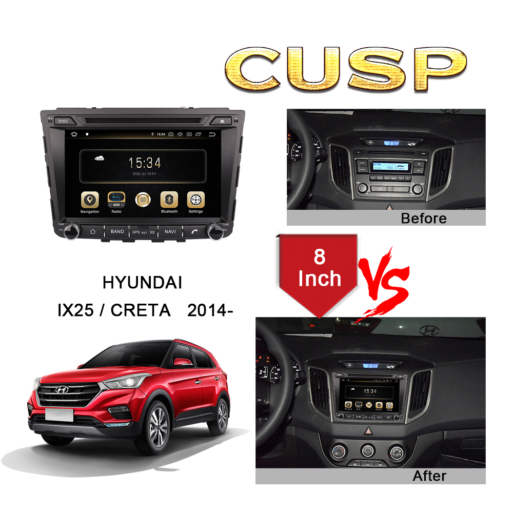 CUSP HYUNDAI IX25 / CRETA 2014- 8 Inch HD IPS Screen Android Car DVD Stereo Radio GPS Navigation Multimedia Player Tablet with Car Play and Android Auto, Bluetooth,FM,AM, RDS, GPS, WIFI, DSP, Audio