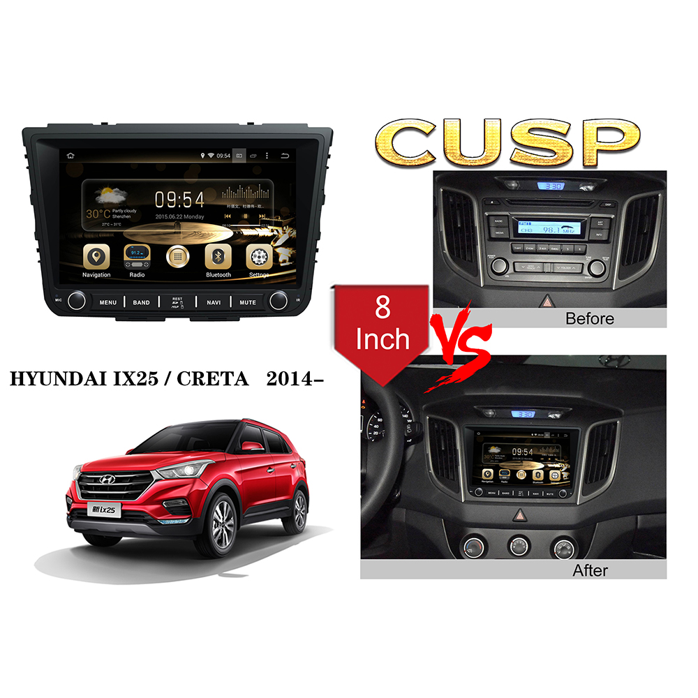 CUSP HYUNDAI IX25 / CRETA 2014- 8 Inch HD IPS Screen Android Car DVD Stereo Radio GPS Navigation Multimedia Player Tablet with Car Play and Android Auto, Bluetooth,FM,AM, RDS, GPS, WIFI, DSP, Audio, Video,Google, Youtube, Play Store, Netflix, Support Rear Camera,in Dash Kit
