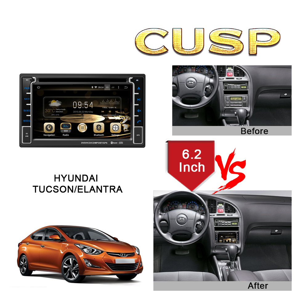 CUSP HYUNDAI TUCSON/ELANTRA Universal 6.2 Inch HD IPS Screen Android Car DVD Stereo Radio GPS Navigation Multimedia Player Tablet with Car Play and Android Auto, Bluetooth,FM,AM, RDS, GPS, WIFI, DSP