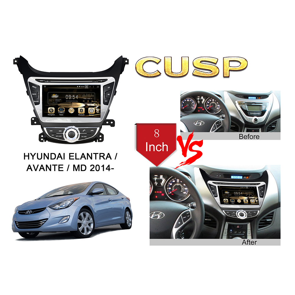 CUSP HYUNDAI ELANTRA / AVANTE / MD 2014- 8 Inch HD IPS Screen Android Car DVD Stereo Radio GPS Navigation Multimedia Player Tablet with Car Play and Android Auto, Bluetooth,FM,AM, RDS, GPS, WIFI, DSP, Audio, Video,Google, Youtube, Play Store, Netflix, Support Rear Camera,in Dash Kit