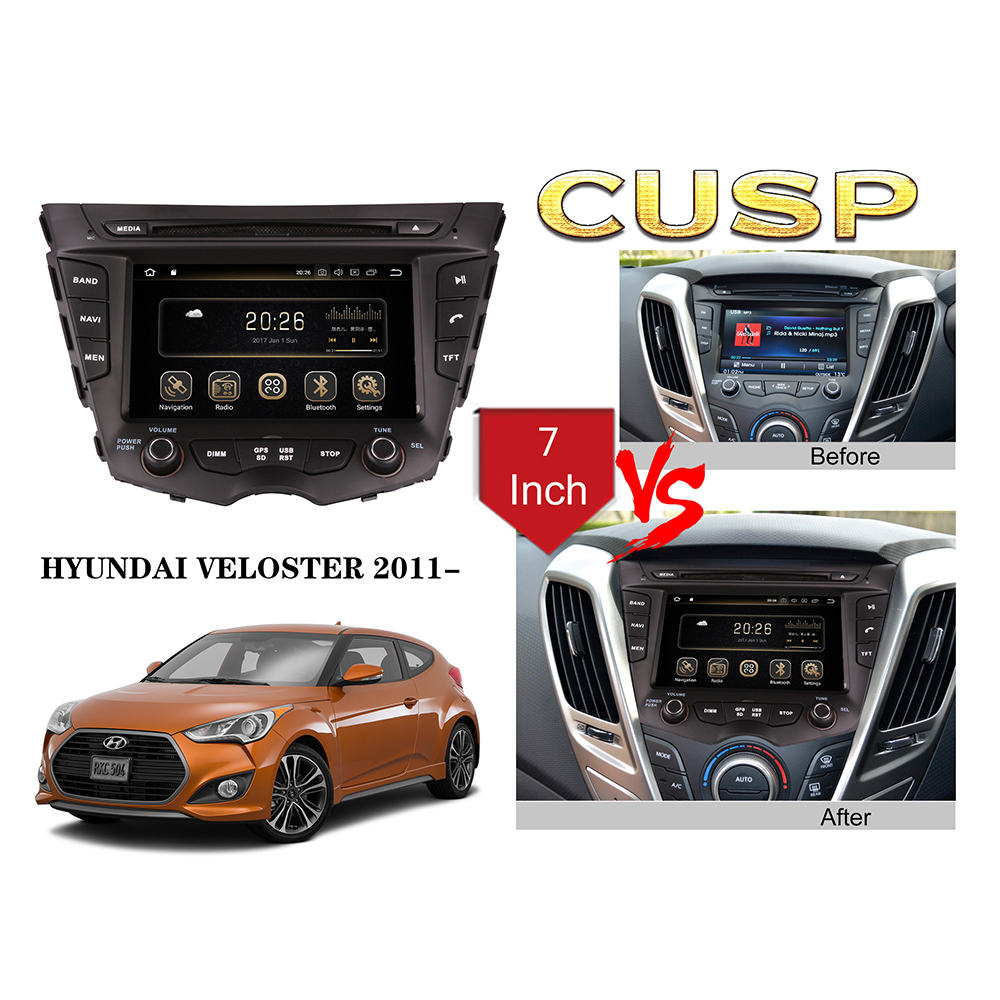 CUSP HYUNDAI VELOSTER 2011- 7 Inch HD IPS Screen Android Car DVD Stereo Radio GPS Navigation Multimedia Player Tablet with Car Play and Android Auto, Bluetooth,FM,AM, RDS, GPS, WIFI, DSP, Audio, Video,Google, Youtube, Play Store, Netflix, Support Rear Camera,in Dash Kit