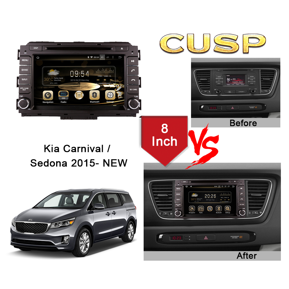 CUSP Kia Carnival / Sedona 2015- 8 Inch HD IPS Screen Android Car DVD Stereo Radio GPS Navigation Multimedia Player Tablet with Car Play and Android Auto, Bluetooth,FM,AM, RDS, GPS, WIFI, DSP, Audio, Video,Google, Youtube, Play Store, Netflix, Support Rear Camera,in Dash Kit