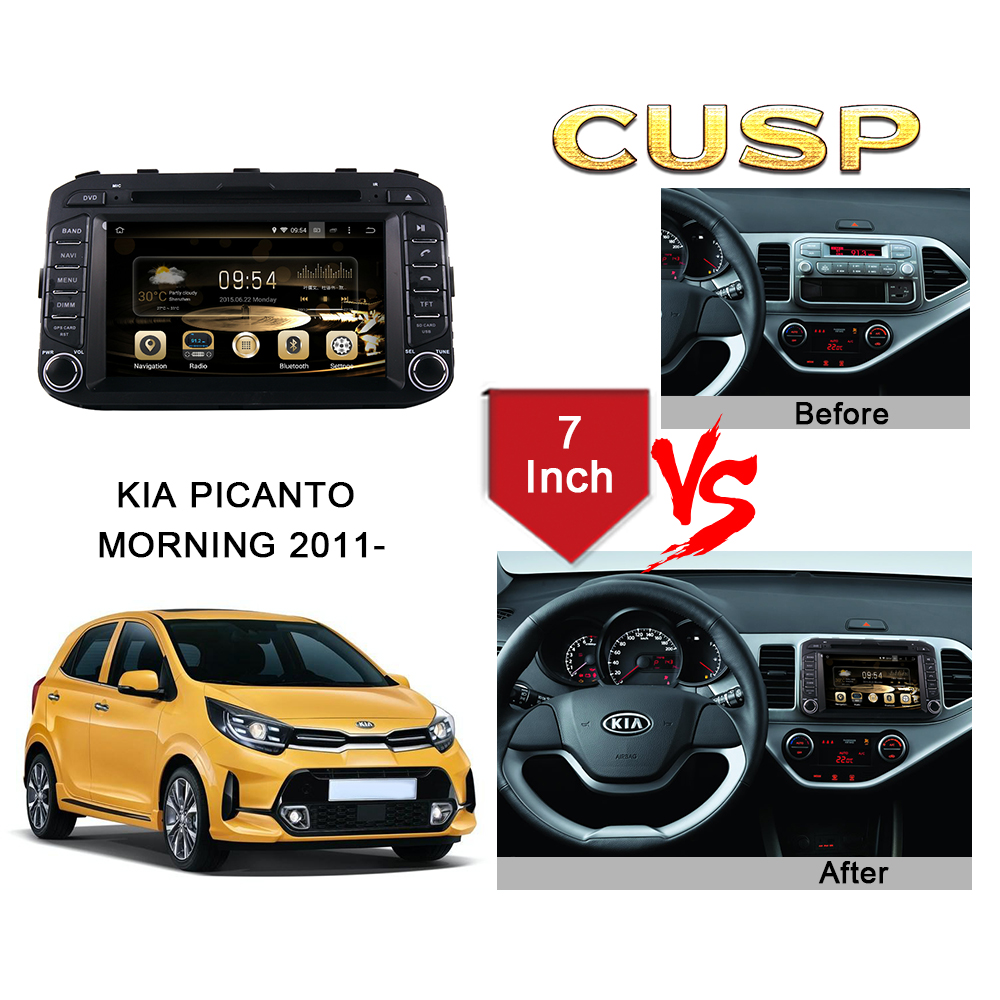 CUSP KIA PICANTO MORNING 2011- 7 Inch HD IPS Screen Android Car DVD Stereo Radio GPS Navigation Multimedia Player Tablet with Car Play and Android Auto, Bluetooth,FM,AM, RDS, GPS, WIFI, DSP, Audio, Video,Google, Youtube, Play Store, Netflix, Support Rear Camera,in Dash Kit