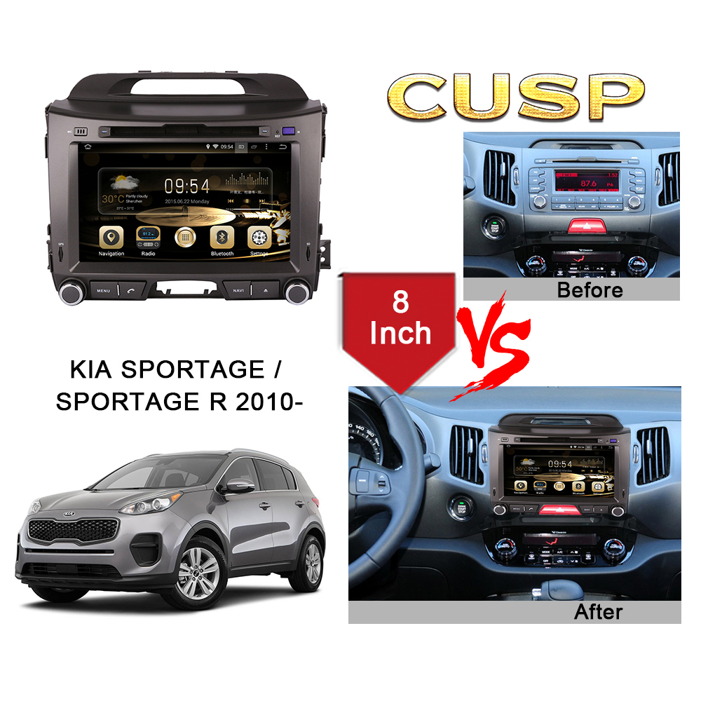 CUSP KIA SPORTAGE /SPORTAGE R 2010- 8 Inch HD IPS Screen Android Car DVD Stereo Radio GPS Navigation Multimedia Player Tablet with Car Play and Android Auto, Bluetooth,FM,AM, RDS, GPS, WIFI, DSP, Audio, Video,Google, Youtube, Play Store, Netflix, Support Rear Camera,in Dash Kit