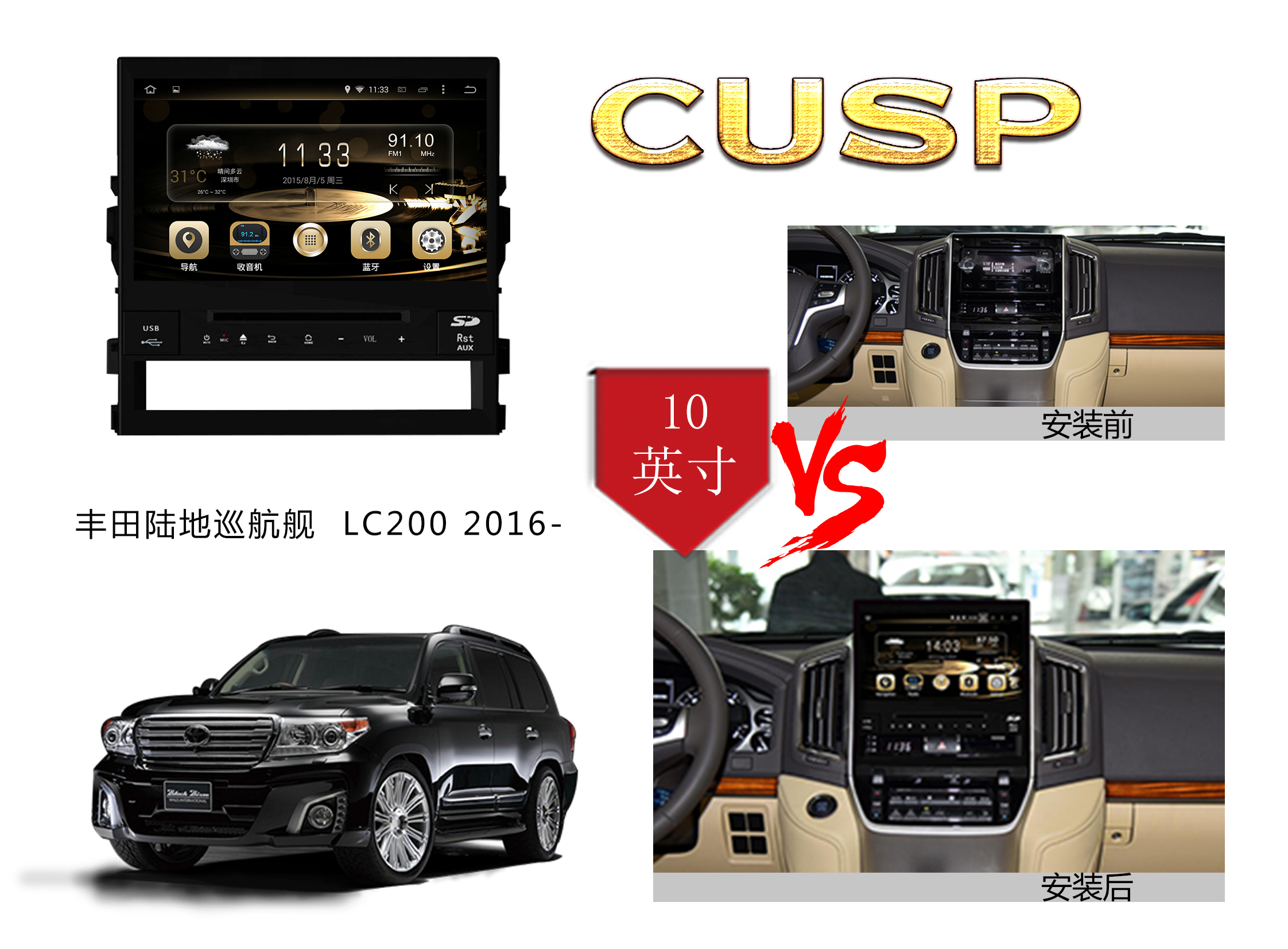 CUSP TOYOTA LAND CRUISER LC200 2016- 10 Inch HD IPS Screen Android Car DVD Stereo Radio GPS Navigation Multimedia Player Tablet with Car Play and Android Auto, Bluetooth,FM,AM, RDS, GPS, WIFI, DSP, Audio, Video,Google, Youtube, Play Store, Netflix, Support Rear Camera,in Dash Kit
