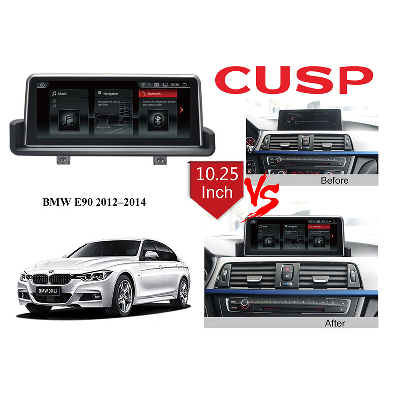 CUSP BMW E90 2006-2012 with IDrive for the car without original screen 10.25 Inch HD IPS Screen Android Car Stereo Radio GPS Navigation Multimedia Player Tablet with Car Play and Android Auto, Bluetooth,FM,AM, RDS, GPS, WIFI, DSP, Audio, Video,Google, Youtube, Play Store, Netflix, Support Rear Camera,in Dash Kit