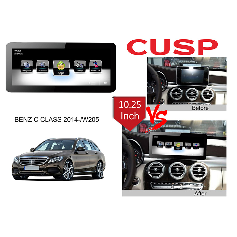 CUSP Mercedes-Benz C class 2014-/W205 NTG5.0 10.25 Inch HD IPS Screen Android Car Stereo Radio GPS Navigation Multimedia Player Tablet with Car Play and Android Auto, Bluetooth,FM,AM, RDS, GPS, WIFI, DSP, Audio, Video,Google, Youtube, Play Store, Netflix, Support Rear Camera,in Dash Kit