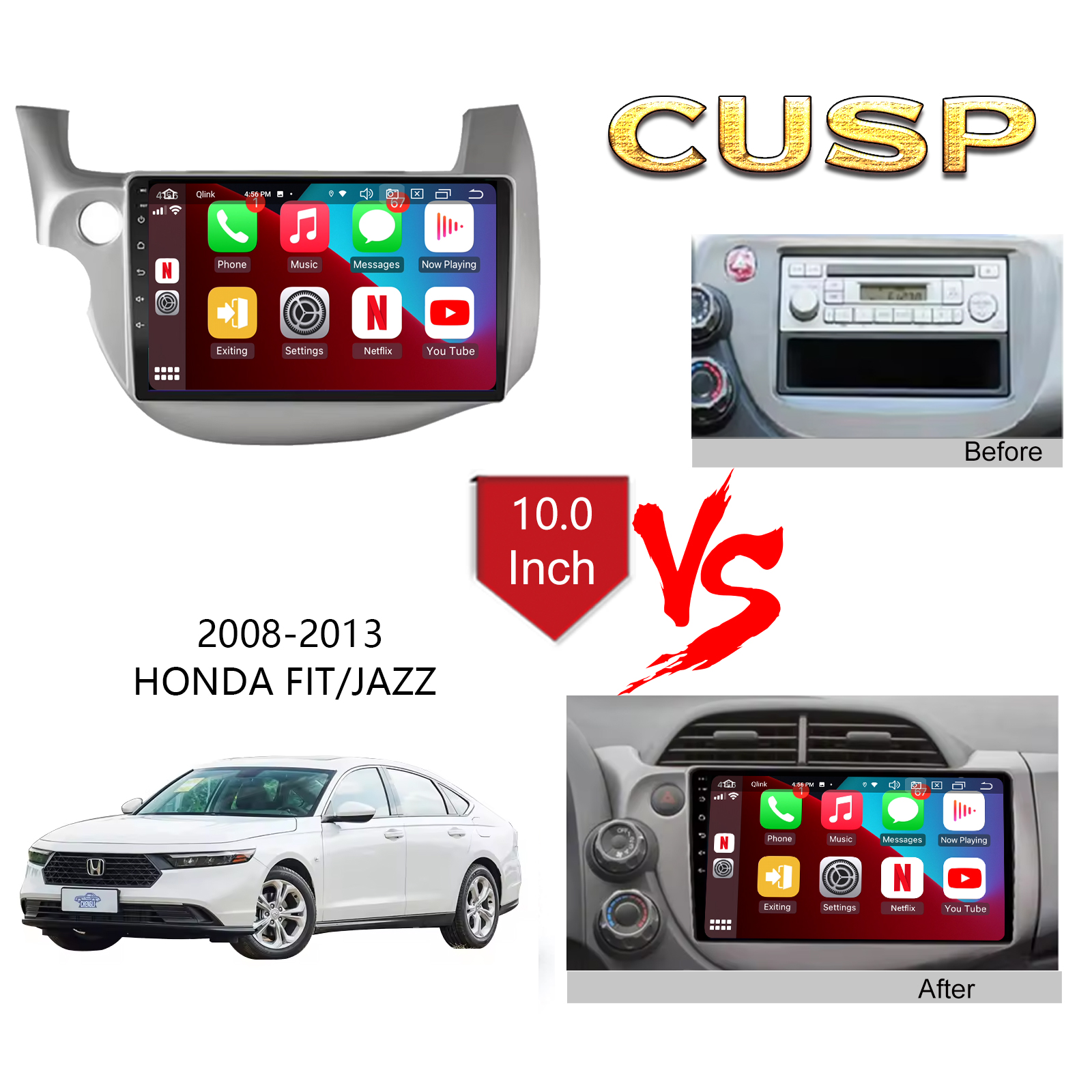 CUSP HONDA JAZZ 2008-2013 RHD 10.1 Inch HD IPS Screen Android Car Stereo Radio GPS Navigation Multimedia Player Tablet with Car Play and Android Auto, Bluetooth,FM,AM, RDS, GPS, WIFI, DSP, Audio, Video,Google, Youtube, Play Store, Netflix, Support Rear Camera,in Dash Kit