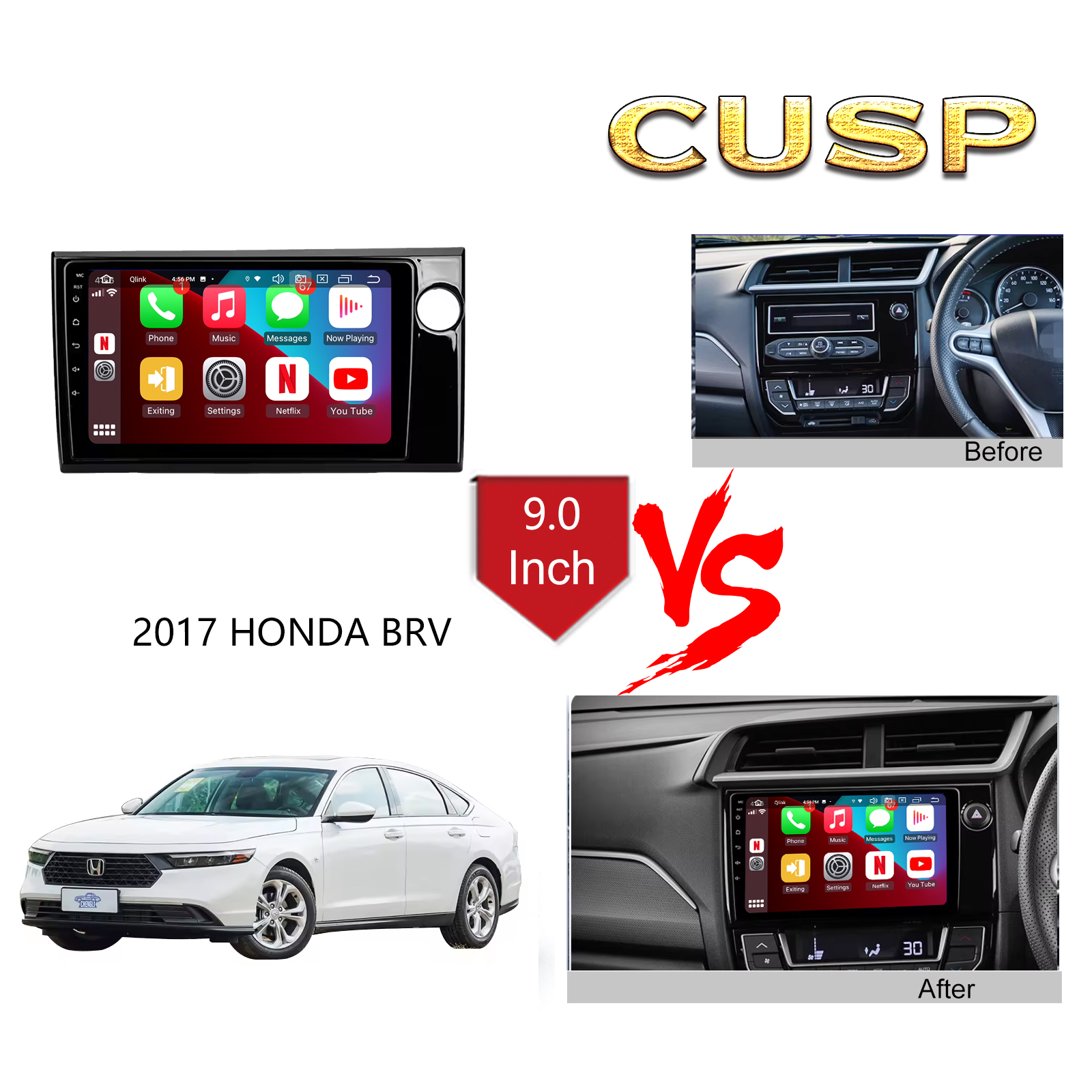 CUSP HONDA BRV 2017 RHD 9 Inch HD IPS Screen Android Car Stereo Radio GPS Navigation Multimedia Player Tablet with Car Play and Android Auto, Bluetooth,FM,AM, RDS, GPS, WIFI, DSP, Audio, Video,Google, Youtube, Play Store, Netflix, Support Rear Camera,in Dash Kit