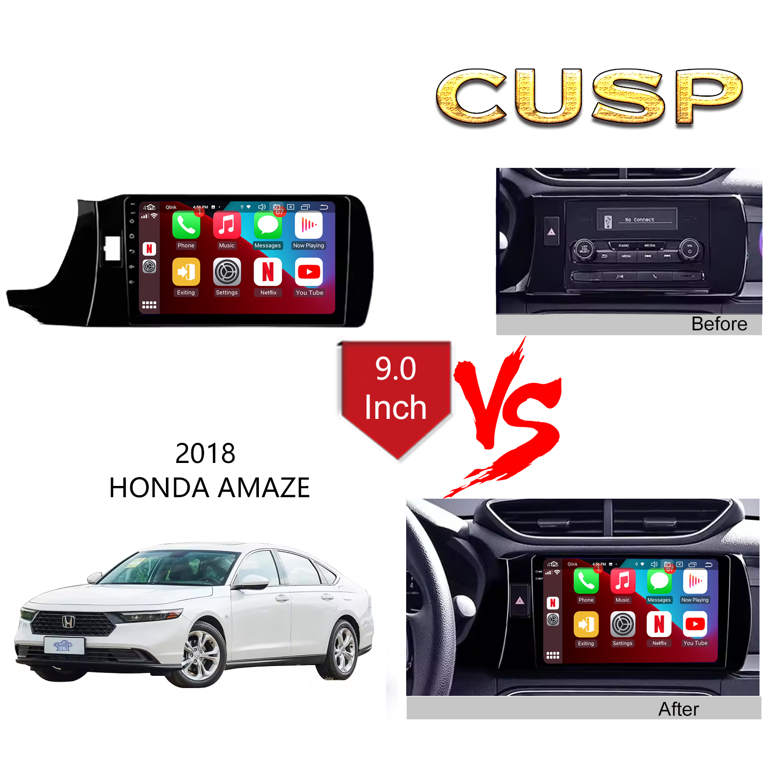 CUSP HONDA AMAZE 2018 RHD 9 Inch HD IPS Screen Android Car Stereo Radio GPS Navigation Multimedia Player Tablet with Car Play and Android Auto, Bluetooth,FM,AM, RDS, GPS, WIFI, DSP, Audio, Video,Google, Youtube, Play Store, Netflix, Support Rear Camera,in Dash Kit