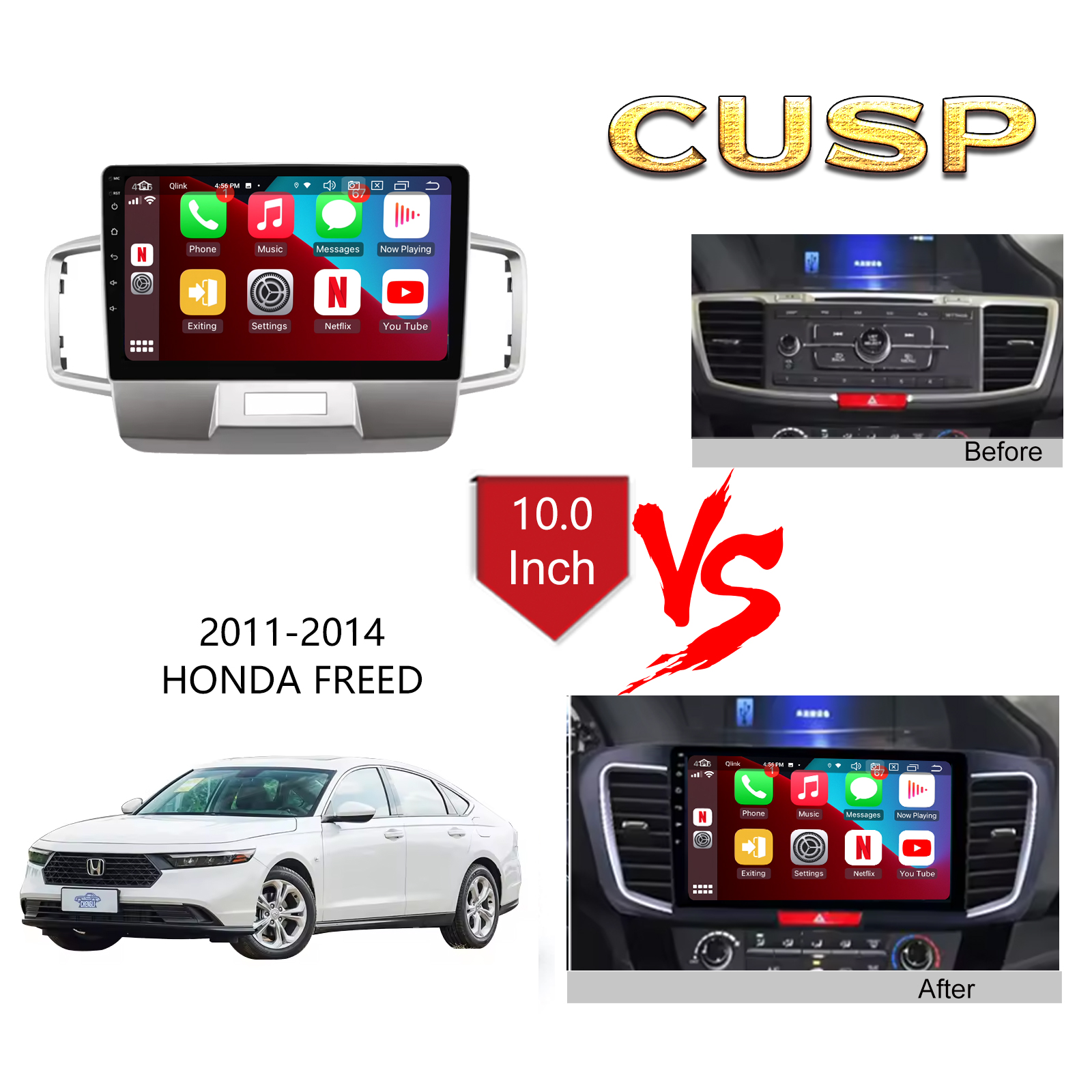 CUSP HONDA FREED 2011-2014 10.1 Inch HD IPS Screen Android Car Stereo Radio GPS Navigation Multimedia Player Tablet with Car Play and Android Auto, Bluetooth,FM,AM, RDS, GPS, WIFI, DSP, Audio, Video,Google, Youtube, Play Store, Netflix, Support Rear Camera,in Dash Kit