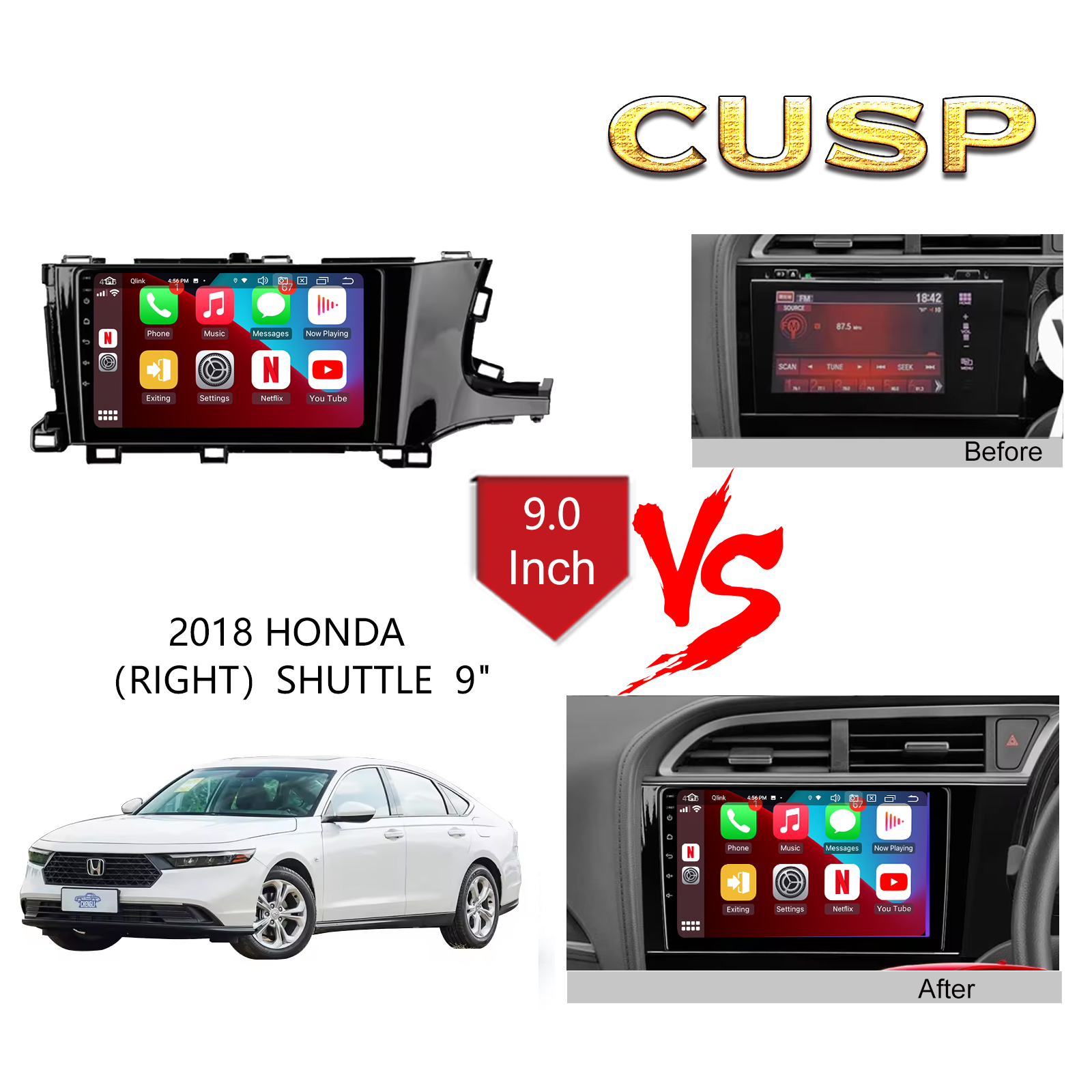 CUSP HONDA SHUTTLE 2016 RHD 9 Inch HD IPS Screen Android Car Stereo Radio GPS Navigation Multimedia Player Tablet with Car Play and Android Auto, Bluetooth,FM,AM, RDS, GPS, WIFI, DSP, Audio, Video,Google, Youtube, Play Store, Netflix, Support Rear Camera,in Dash Kit