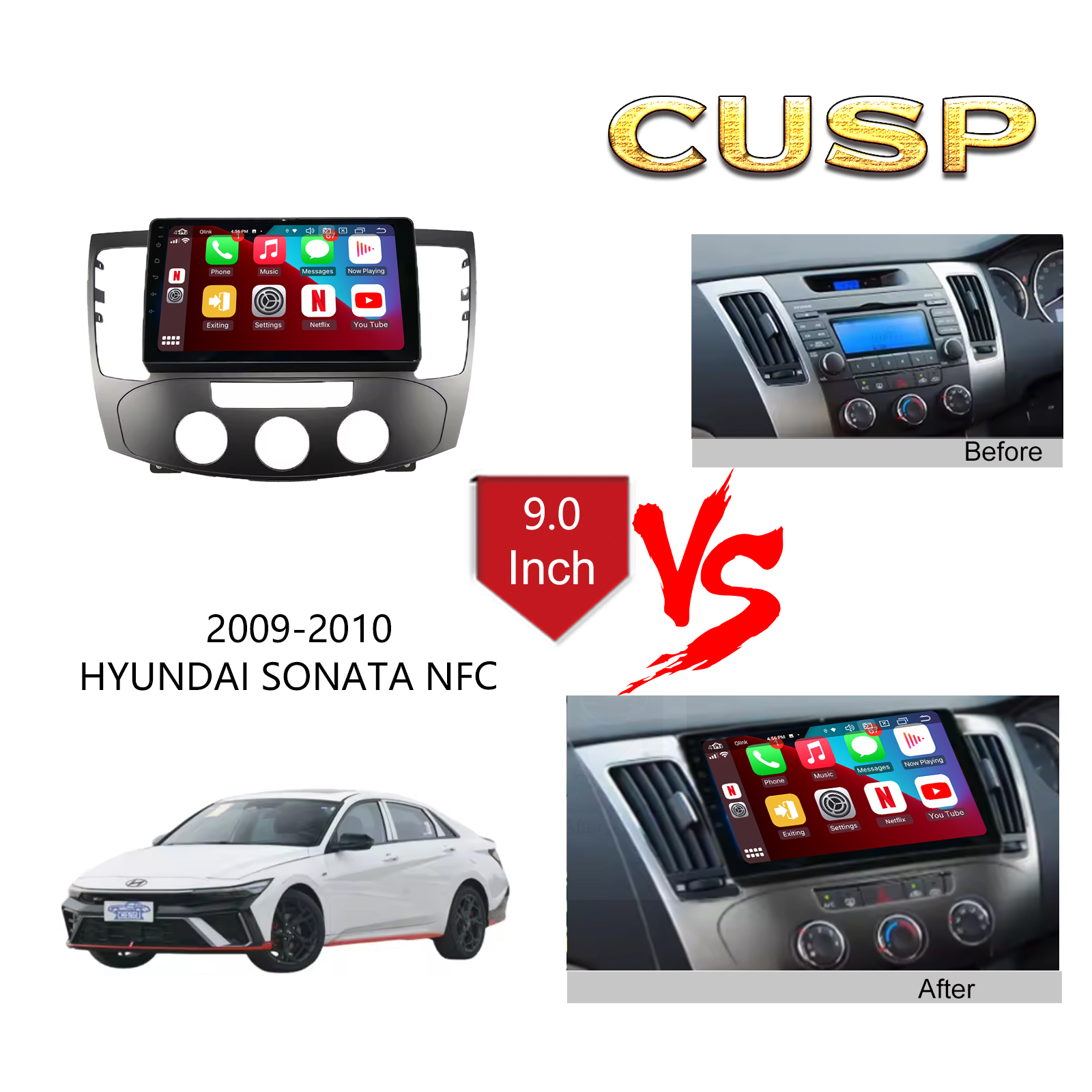 CUSP HYUNDAI SONATA NFC 2009-2010 MANUAL AC 9 Inch HD IPS Screen Android Car Stereo Radio GPS Navigation Multimedia Player Tablet with Car Play and Android Auto, Bluetooth,FM,AM, RDS, GPS, WIFI, DSP, Audio, Video,Google, Youtube, Play Store, Netflix, Support Rear Camera,in Dash Kit