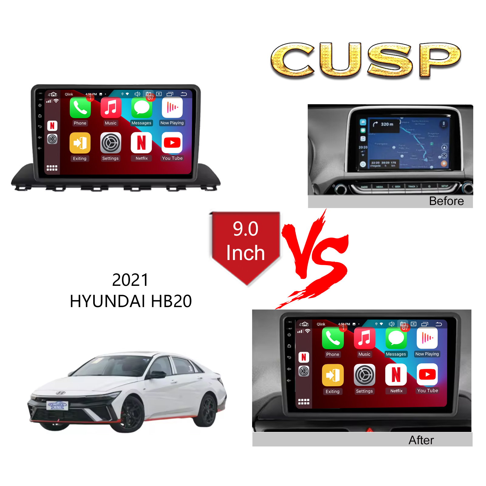 CUSP HYUNDAI HB20 2021 9 Inch HD IPS Screen Android Car Stereo Radio GPS Navigation Multimedia Player Tablet with Car Play and Android Auto, Bluetooth,FM,AM, RDS, GPS, WIFI, DSP, Audio, Video,Google, Youtube, Play Store, Netflix, Support Rear Camera,in Dash Kit