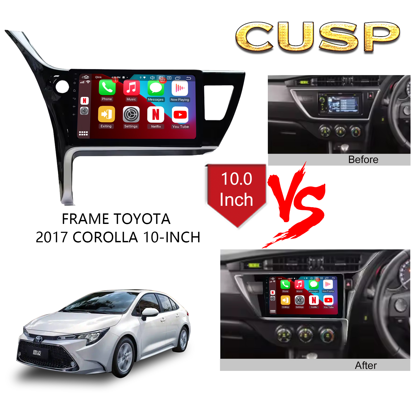 CUSP TOYOTA COROLLA 2017 LHD 10.1 Inch HD IPS Screen Android Car Stereo Radio GPS Navigation Multimedia Player Tablet with Car Play and Android Auto, Bluetooth,FM,AM, RDS, GPS, WIFI, DSP, Audio, Video,Google, Youtube, Play Store, Netflix, Support Rear Camera,in Dash Kit