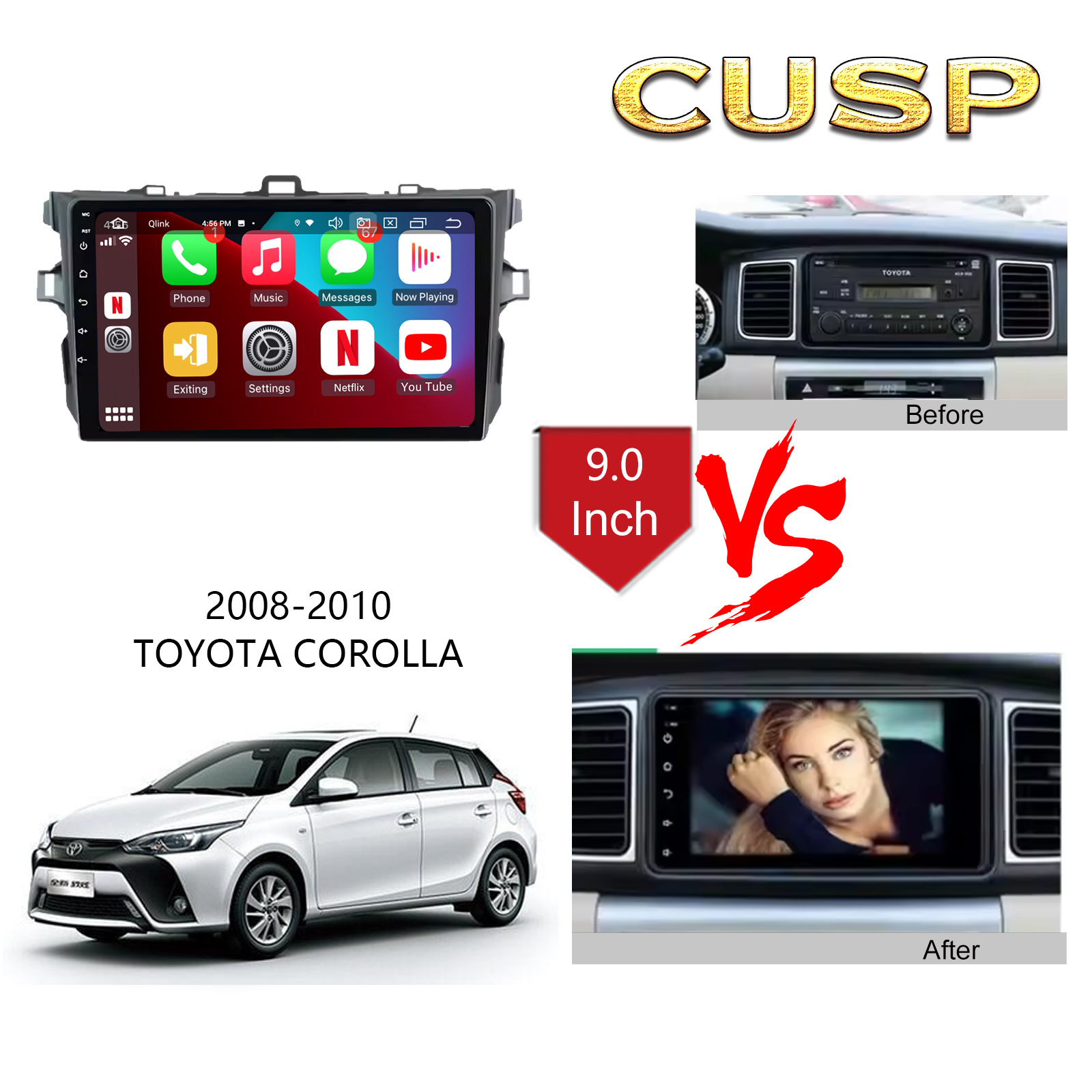 CUSP TOYOTA COROLLA 2008-2010 9 Inch HD IPS Screen Android Car Stereo Radio GPS Navigation Multimedia Player Tablet with Car Play and Android Auto, Bluetooth,FM,AM, RDS, GPS, WIFI, DSP, Audio, Video,Google, Youtube, Play Store, Netflix, Support Rear Camera,in Dash Kit