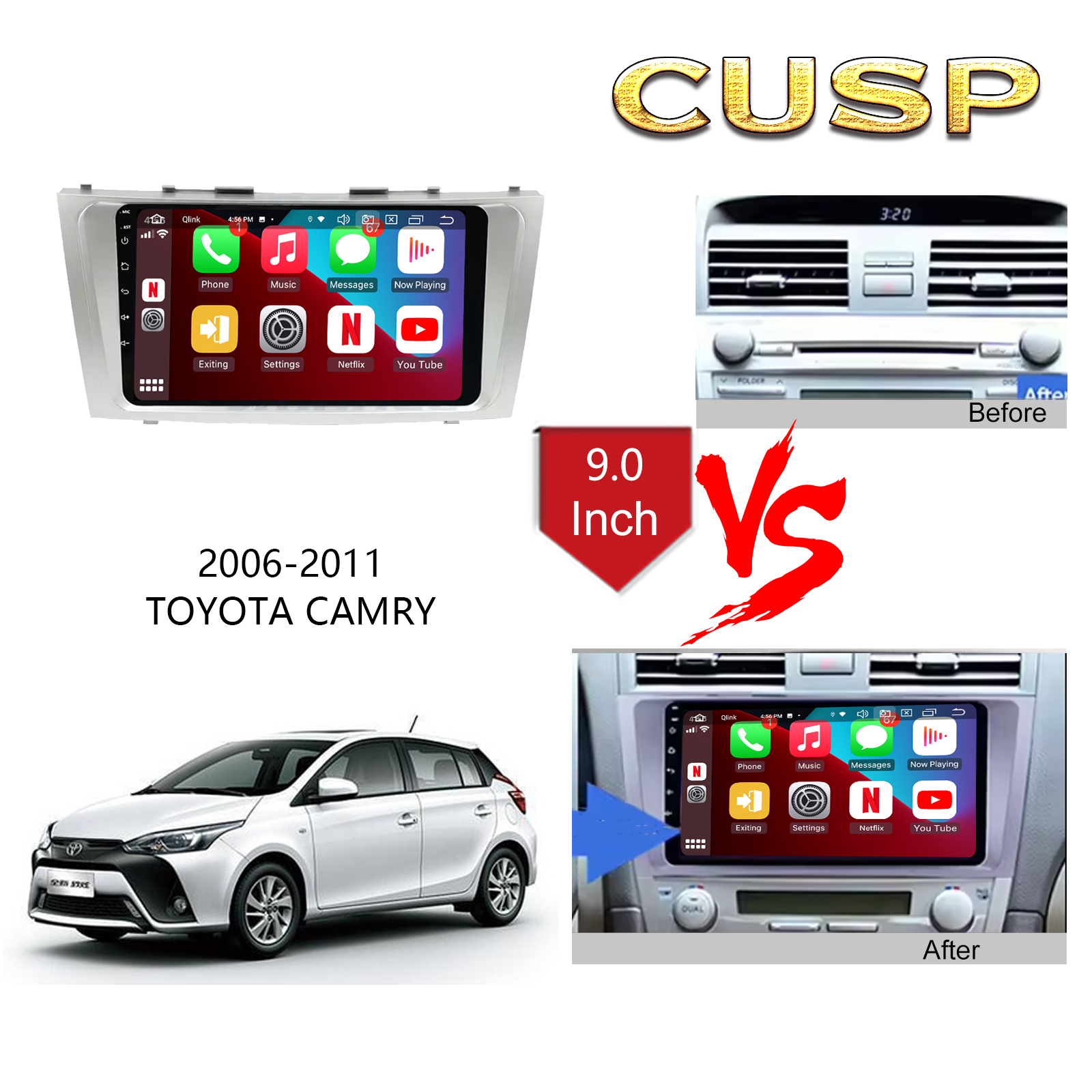 CUSP TOYOTA CAMRY 2006-2011 9 Inch HD IPS Screen Android Car Stereo Radio GPS Navigation Multimedia Player Tablet with Car Play and Android Auto, Bluetooth,FM,AM, RDS, GPS, WIFI, DSP, Audio, Video,Google, Youtube, Play Store, Netflix, Support Rear Camera,in Dash Kit