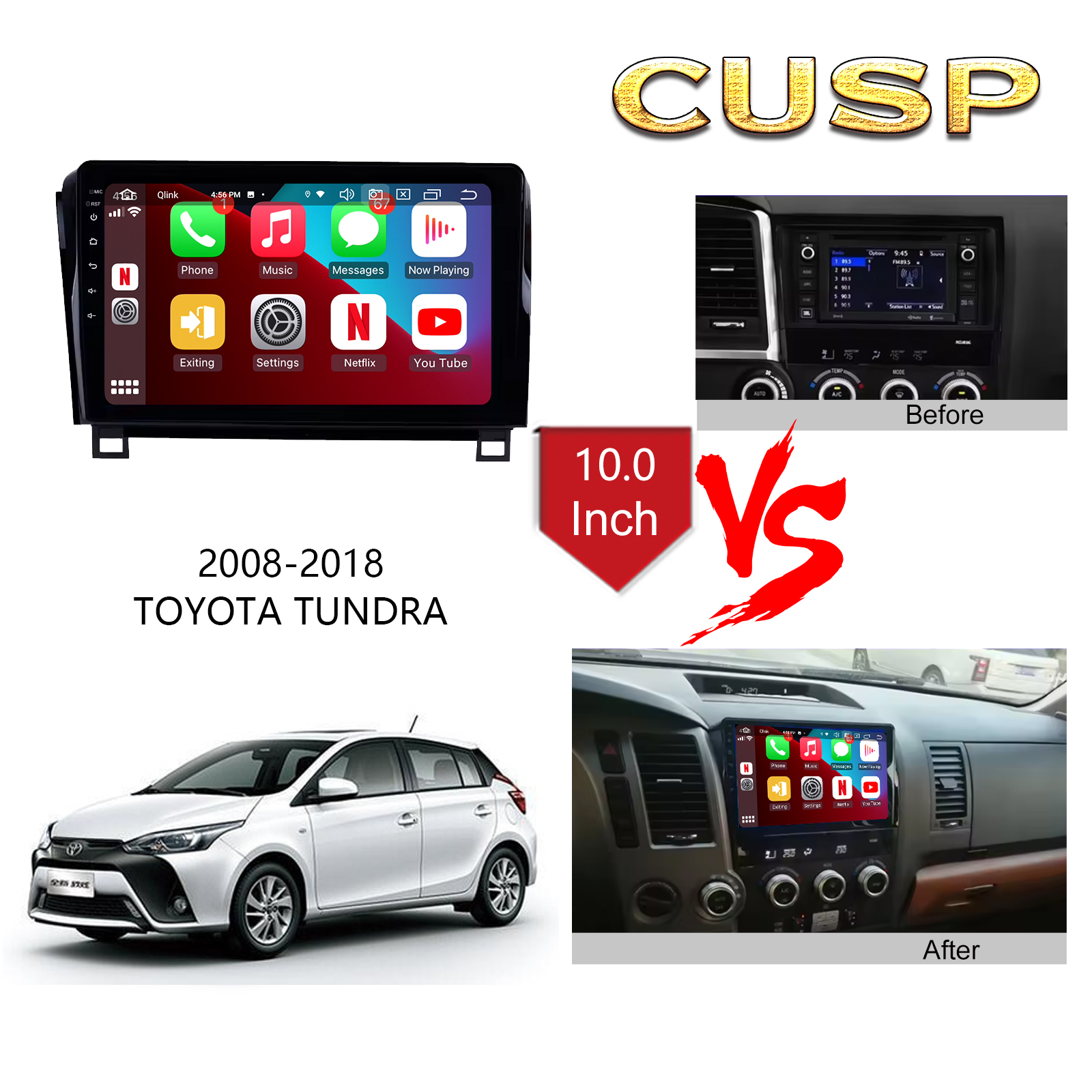 CUSP TOYOTA SEQUOIA TUNDRA 2008-2018 10.1 Inch HD IPS Screen Android Car Stereo Radio GPS Navigation Multimedia Player Tablet with Car Play and Android Auto, Bluetooth,FM,AM, RDS, GPS, WIFI, DSP, Audio, Video,Google, Youtube, Play Store, Netflix, Support Rear Camera,in Dash Kit