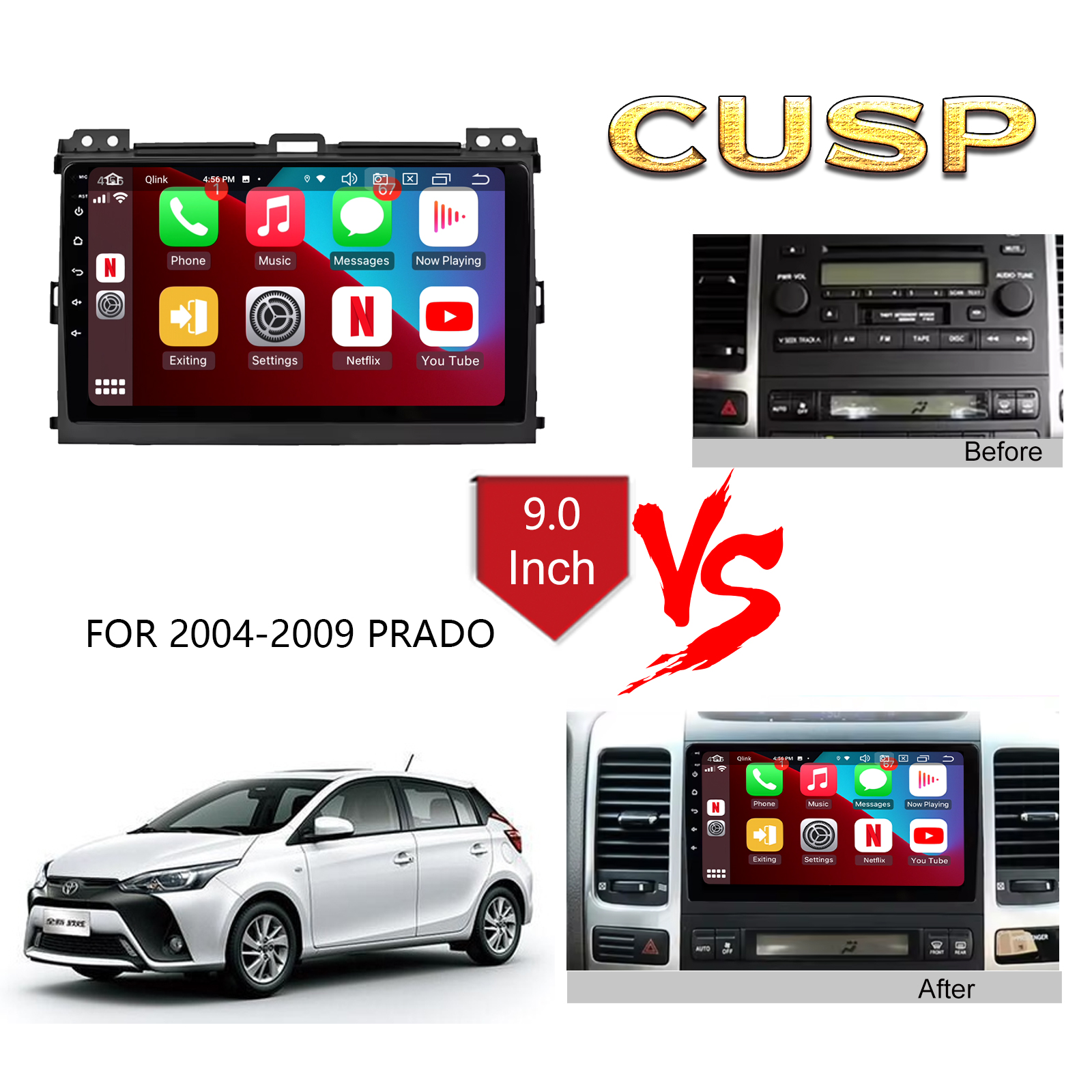 CUSP TOYOTA PRADO Universal 9 Inch HD IPS Screen Android Car Stereo Radio GPS Navigation Multimedia Player Tablet with Car Play and Android Auto, Bluetooth,FM,AM, RDS, GPS, WIFI, DSP, Audio, Video,Google, Youtube, Play Store, Netflix, Support Rear Camera,in Dash Kit