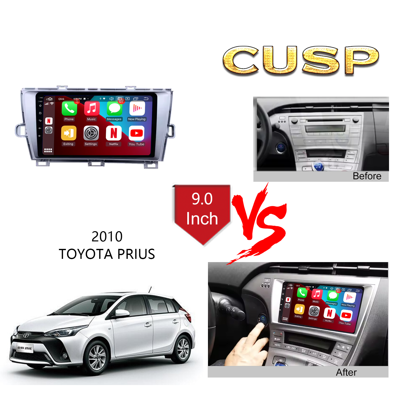 CUSP TOYOTA PRIUS 2010 9 Inch HD IPS Screen Android Car Stereo Radio GPS Navigation Multimedia Player Tablet with Car Play and Android Auto, Bluetooth,FM,AM, RDS, GPS, WIFI, DSP, Audio, Video,Google, Youtube, Play Store, Netflix, Support Rear Camera,in Dash Kit