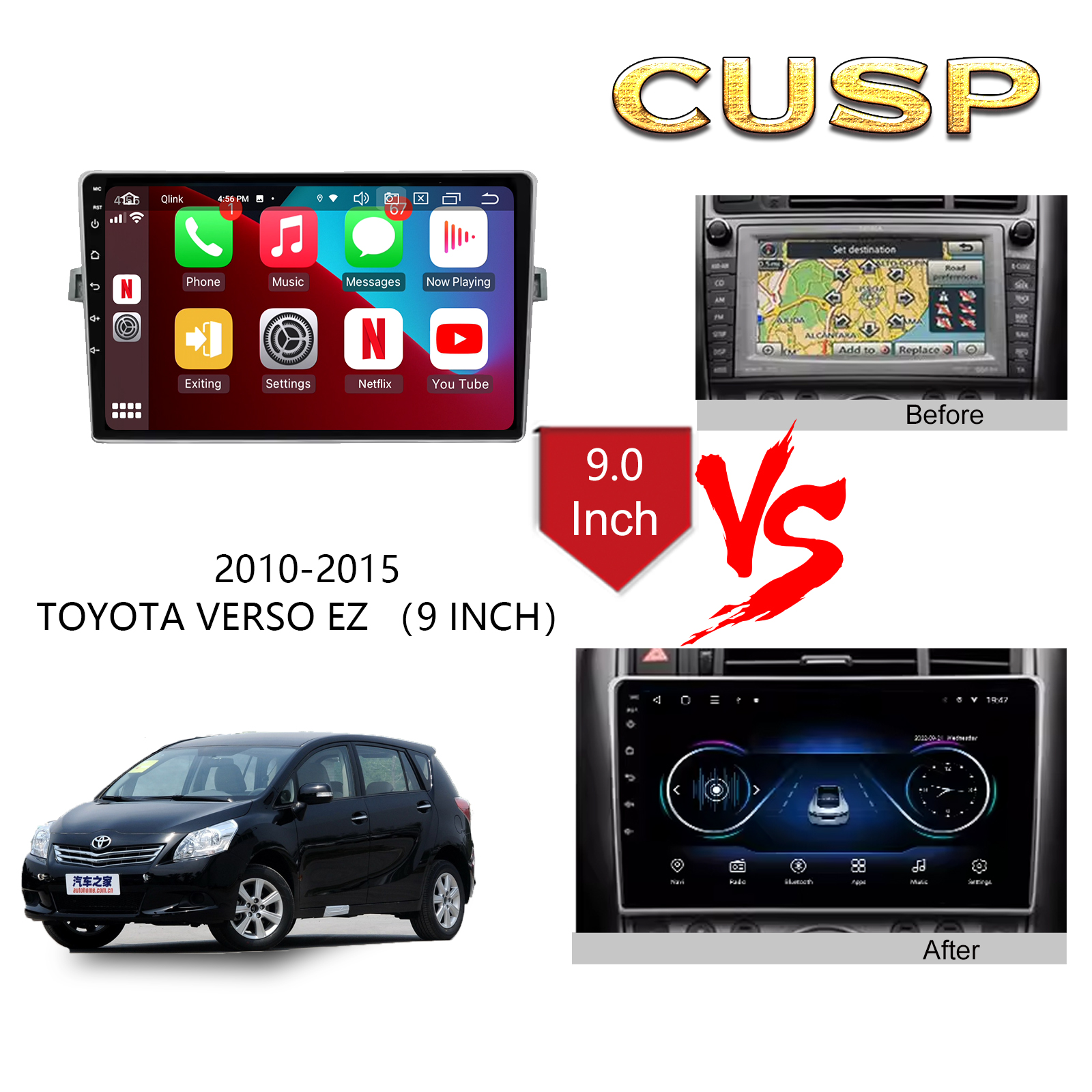 CUSP TOYOTA VERSO 2010-2015 9 Inch HD IPS Screen Android Car Stereo Radio GPS Navigation Multimedia Player Tablet with Car Play and Android Auto, Bluetooth,FM,AM, RDS, GPS, WIFI, DSP, Audio, Video,Google, Youtube, Play Store, Netflix, Support Rear Camera,in Dash Kit