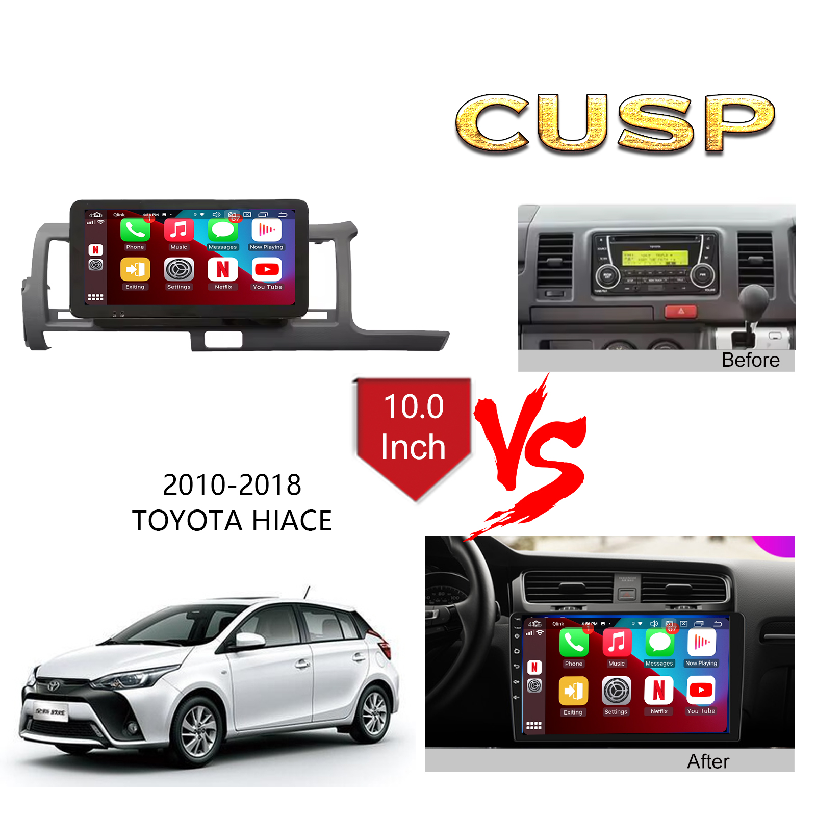 CUSP TOYOTA HIACE 2010-2018 RHD 10.1 Inch HD IPS Screen Android Car Stereo Radio GPS Navigation Multimedia Player Tablet with Car Play and Android Auto, Bluetooth,FM,AM, RDS, GPS, WIFI, DSP, Audio, Video,Google, Youtube, Play Store, Netflix, Support Rear Camera,in Dash Kit
