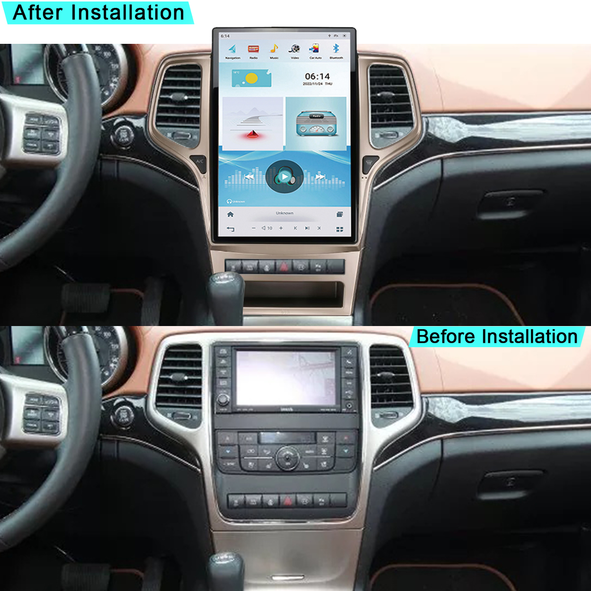 CUSP Jeep Grand Cherokee 2009-2013 14.5 Inch HD IPS Screen Android Car Stereo Radio GPS Navigation Multimedia Player Tablet Tesla Style Vertical Screen with Car Play and Android Auto, Bluetooth,FM,AM, RDS, GPS, WIFI, DSP, Audio, Video,Google, Youtube, Play Store, Netflix, Support Rear Camera,in Dash Kit
