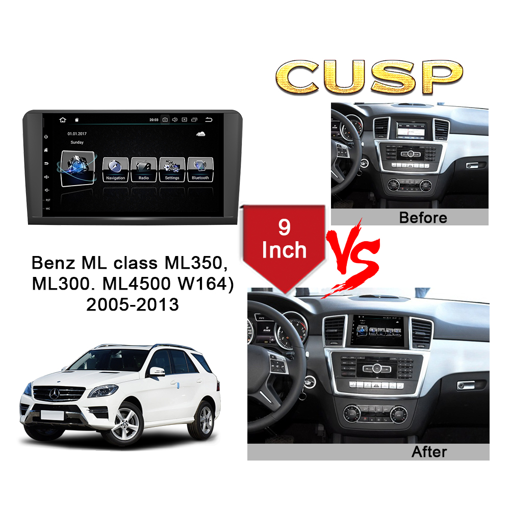 CUSP Benz ML class ML350, ML300. ML4500 W164 2005-2013 9 Inch HD IPS Screen Android Car Stereo Radio GPS Navigation Multimedia Player Tablet with Car Play and Android Auto, Bluetooth,FM,AM, RDS, GPS, WIFI, DSP, Audio, Video,Google, Youtube, Play Store, Netflix, Support Rear Camera,in Dash Kit